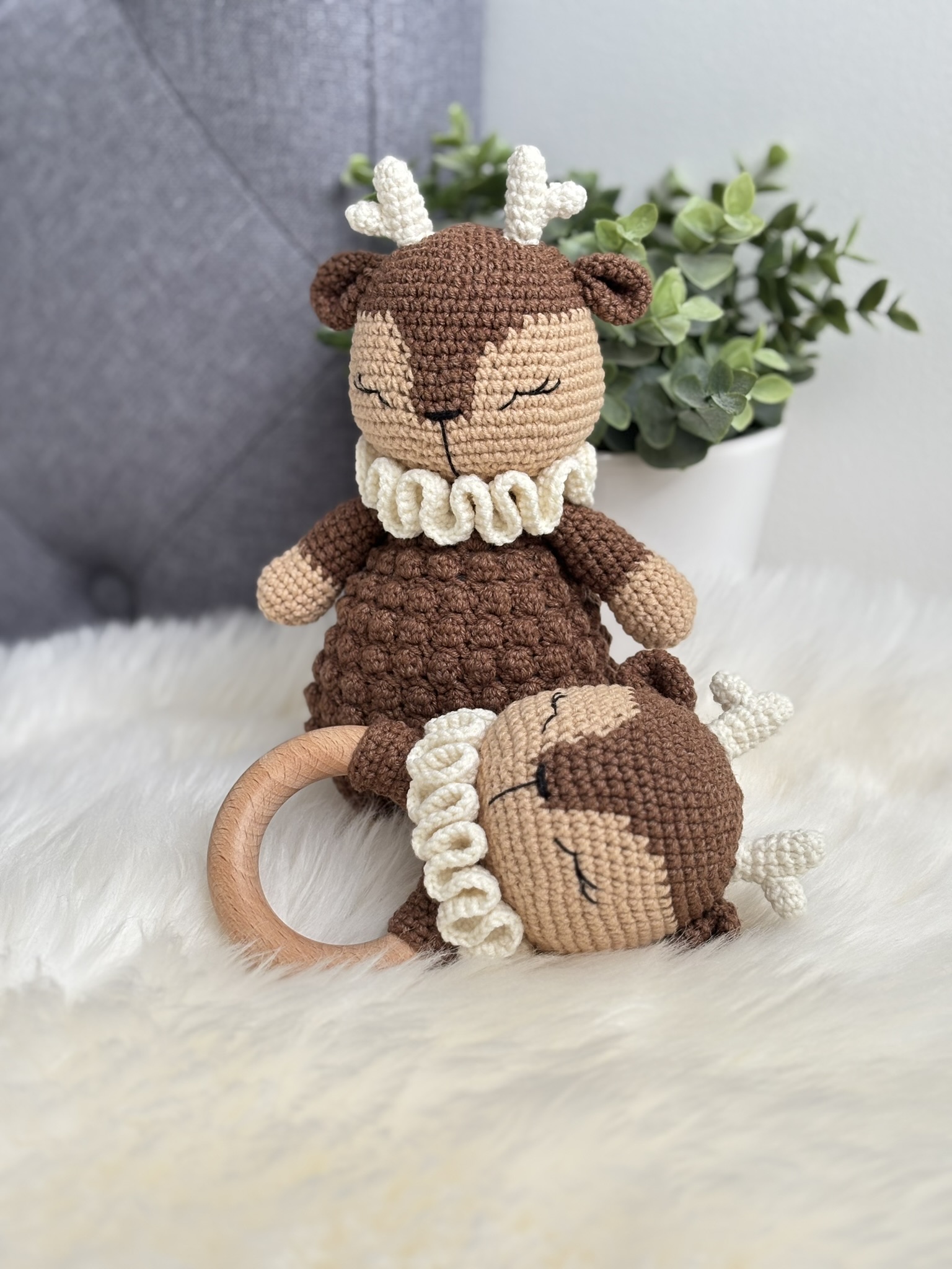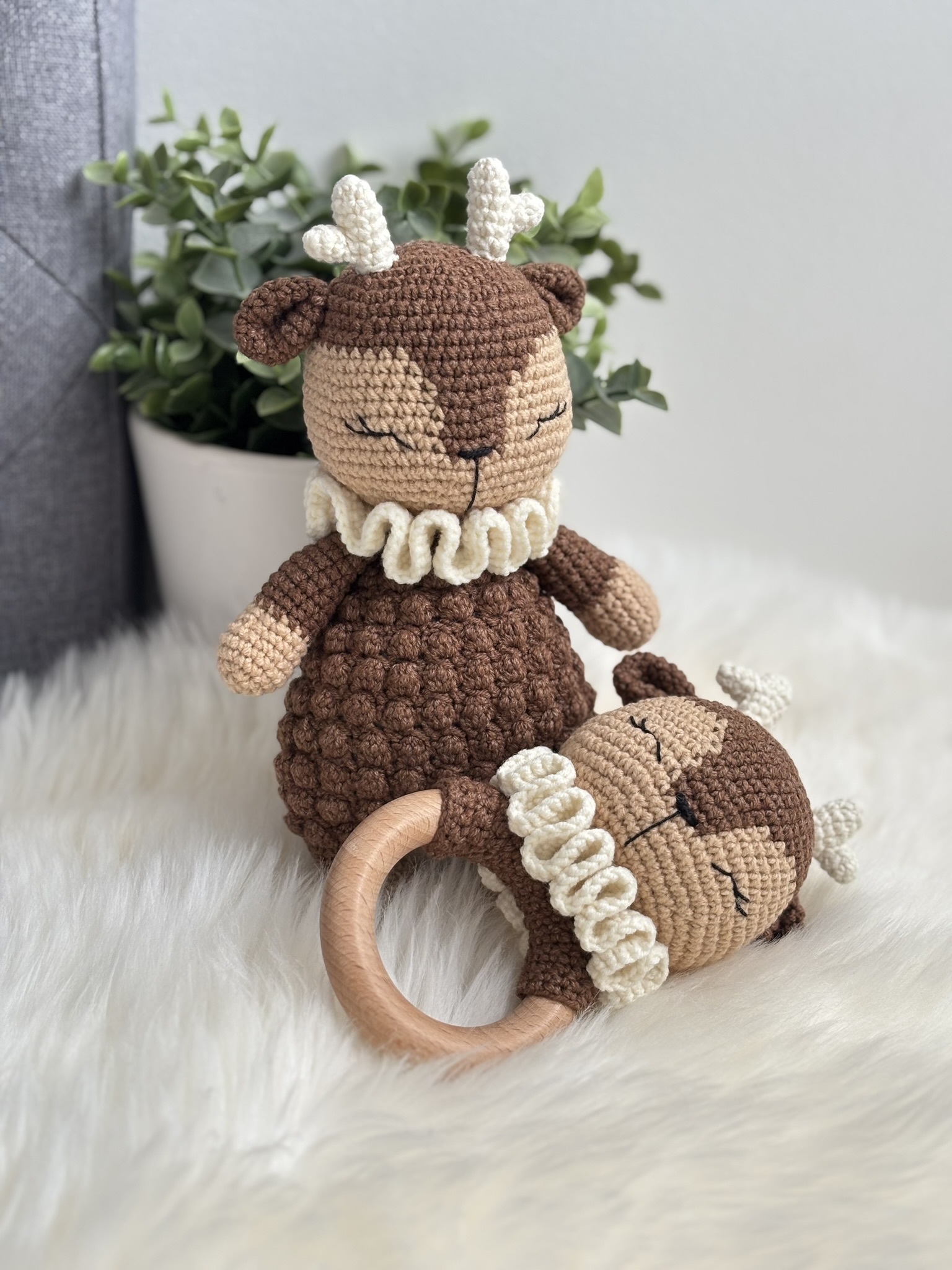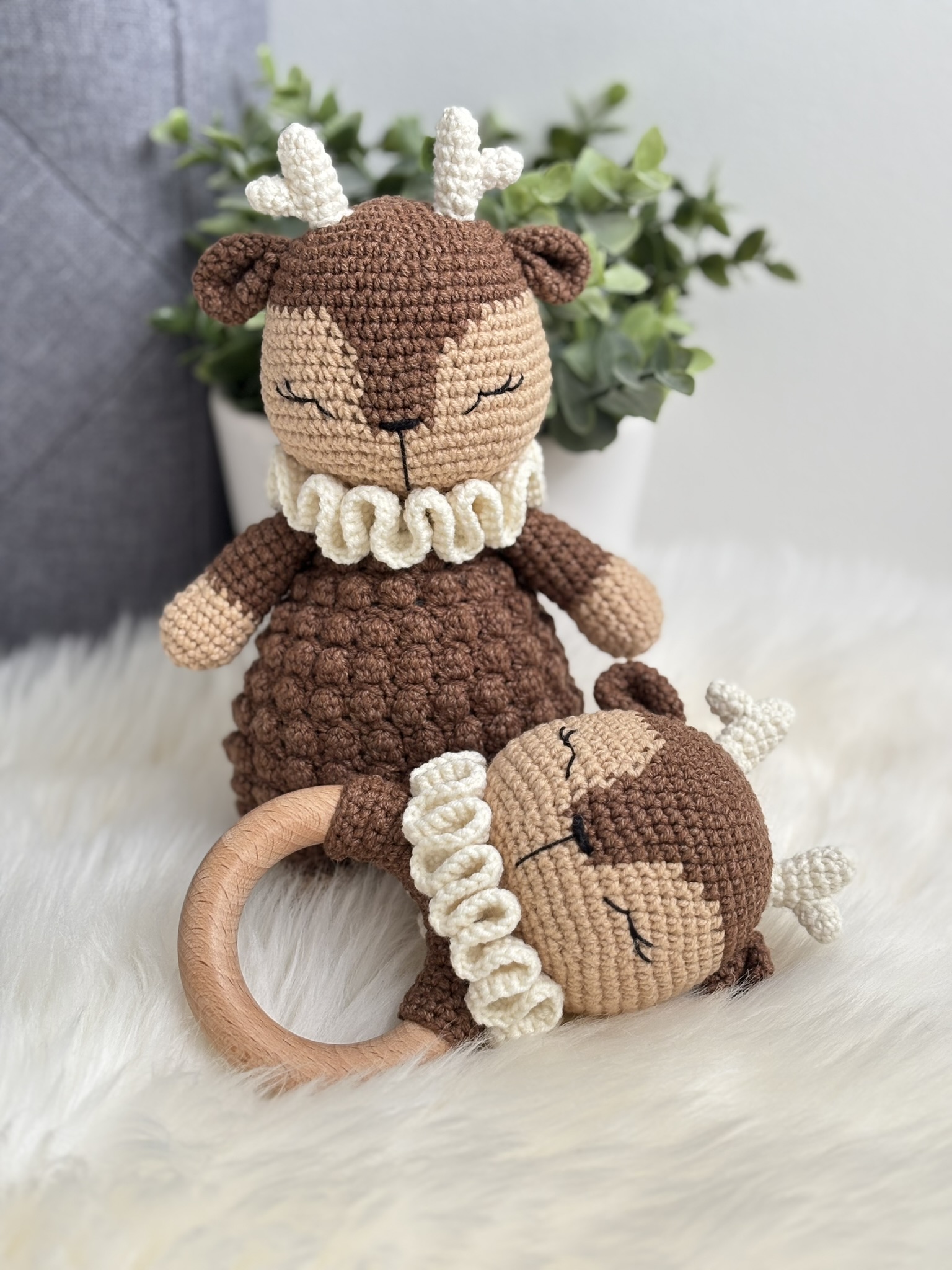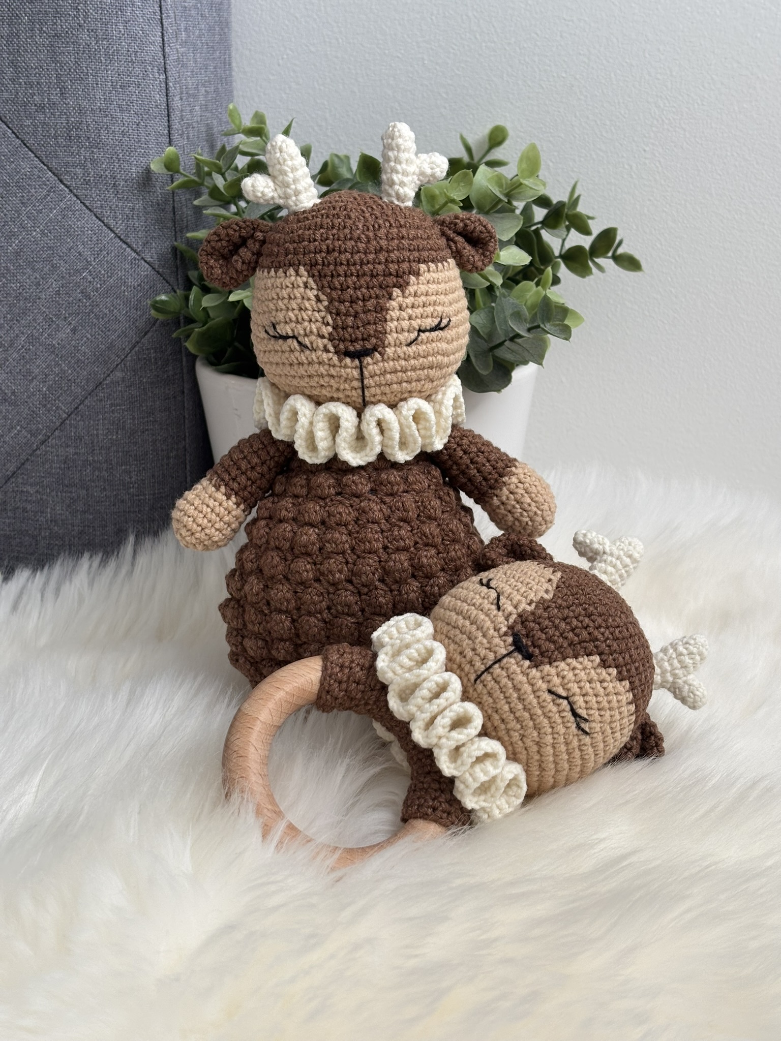 Jolie coffret Renne : Doudou + Hochet, fait main au crochet avec beaucoup de soin et d’amour 🙂