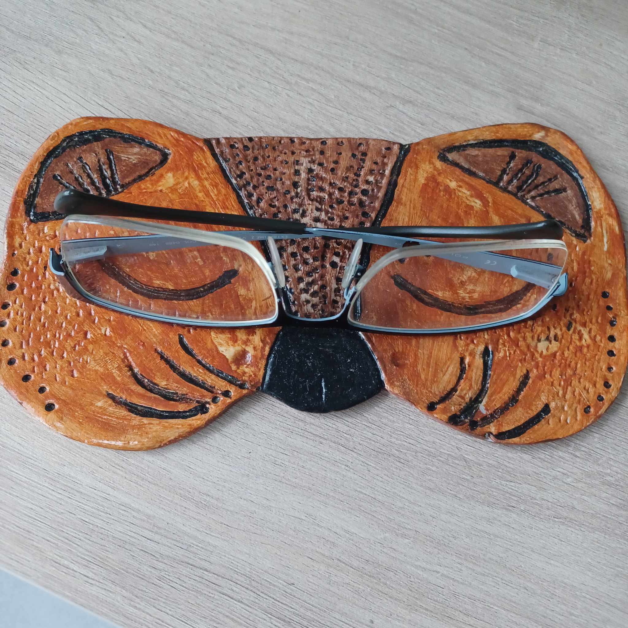 Un repose lunettes tête de chat, en argile auto durcissante, peint à la main et verni.