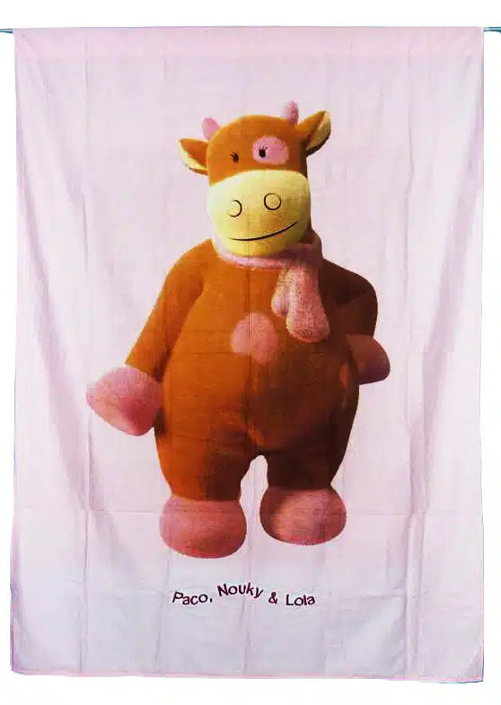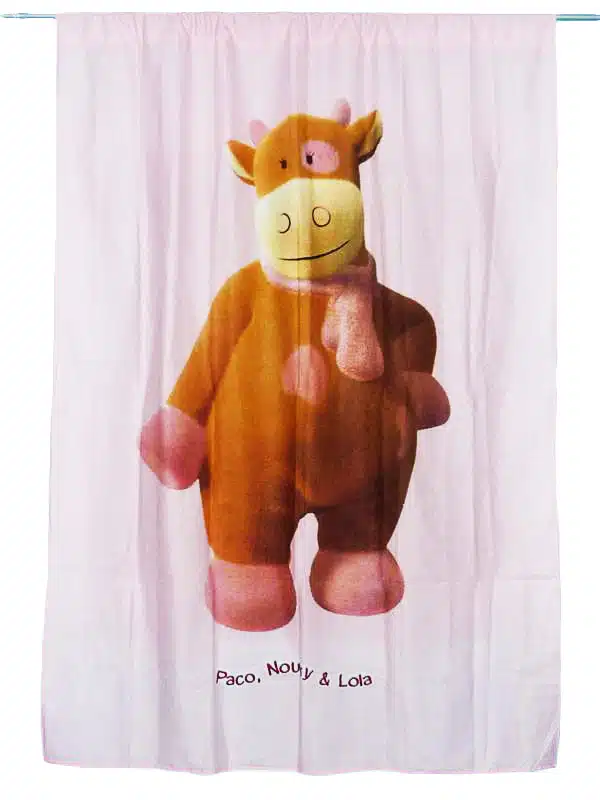 L’ indispensable pour l’ornement d’une chambre de bébé, très beau rideau au motif géant de LOLA LA VACHE.