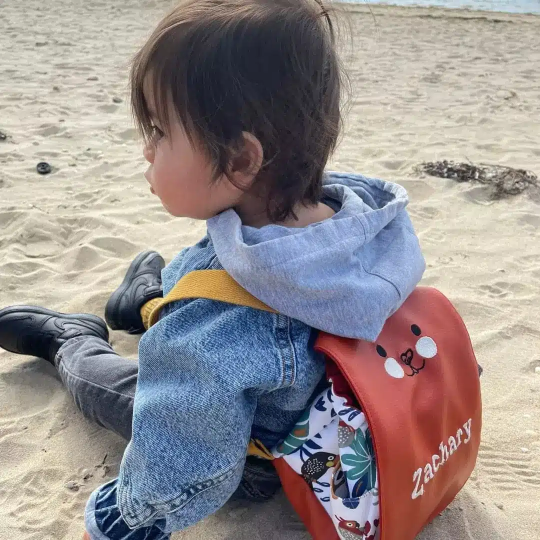 Joli petit sac à dos qui accompagnera votre enfant toute la journée, à la crèche, à l’école. Peut contenir un rechange, un doudou ou autres petites affaires. Il est réglable grâce aux boucles de sangles.