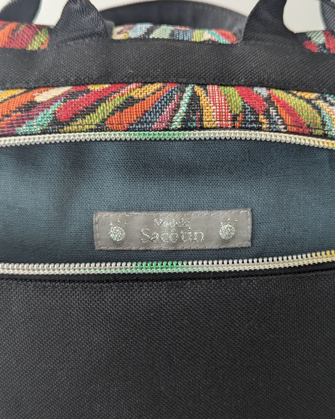 - Extérieur : jacquard multicolore imperméabilisé Odicoat & toile à sac noire déperlante