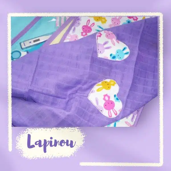 * LANGE-DOUDOU : 100% coton violet / Appliqués : 100% coton