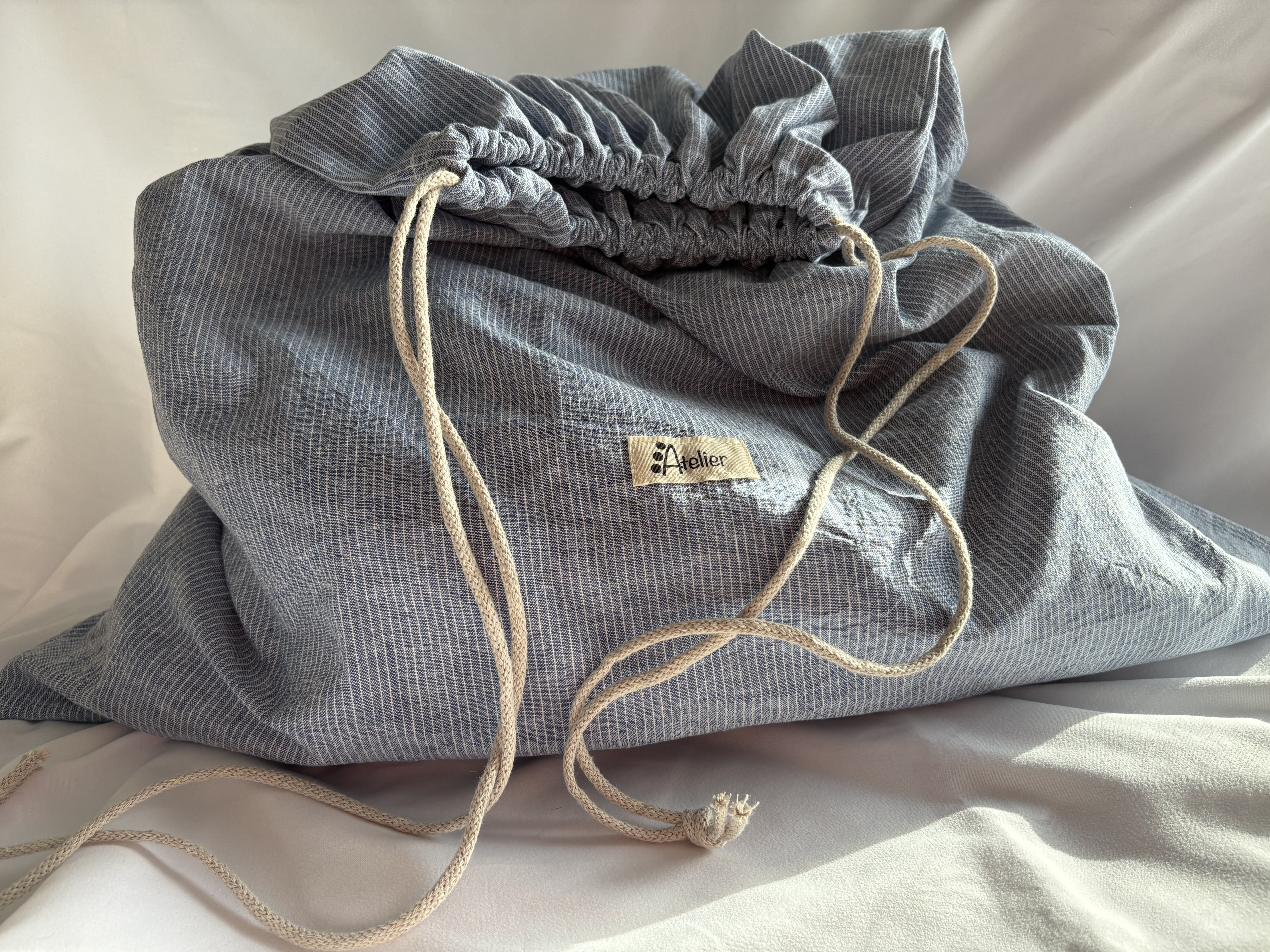 Grand sac à linge sale.  Le tissus a été lavé avant la couture. Très léger pour mettre dans sa valise.
