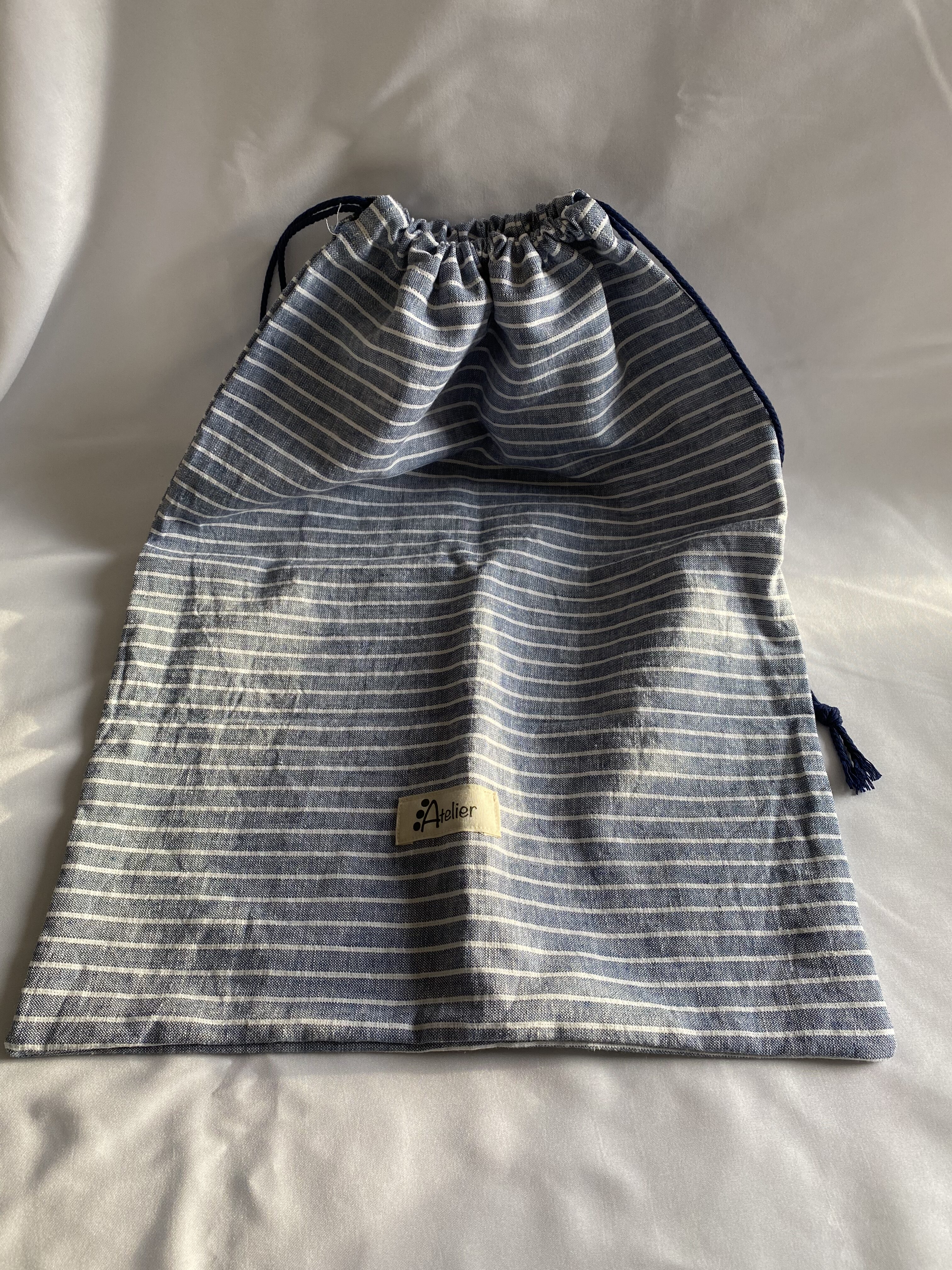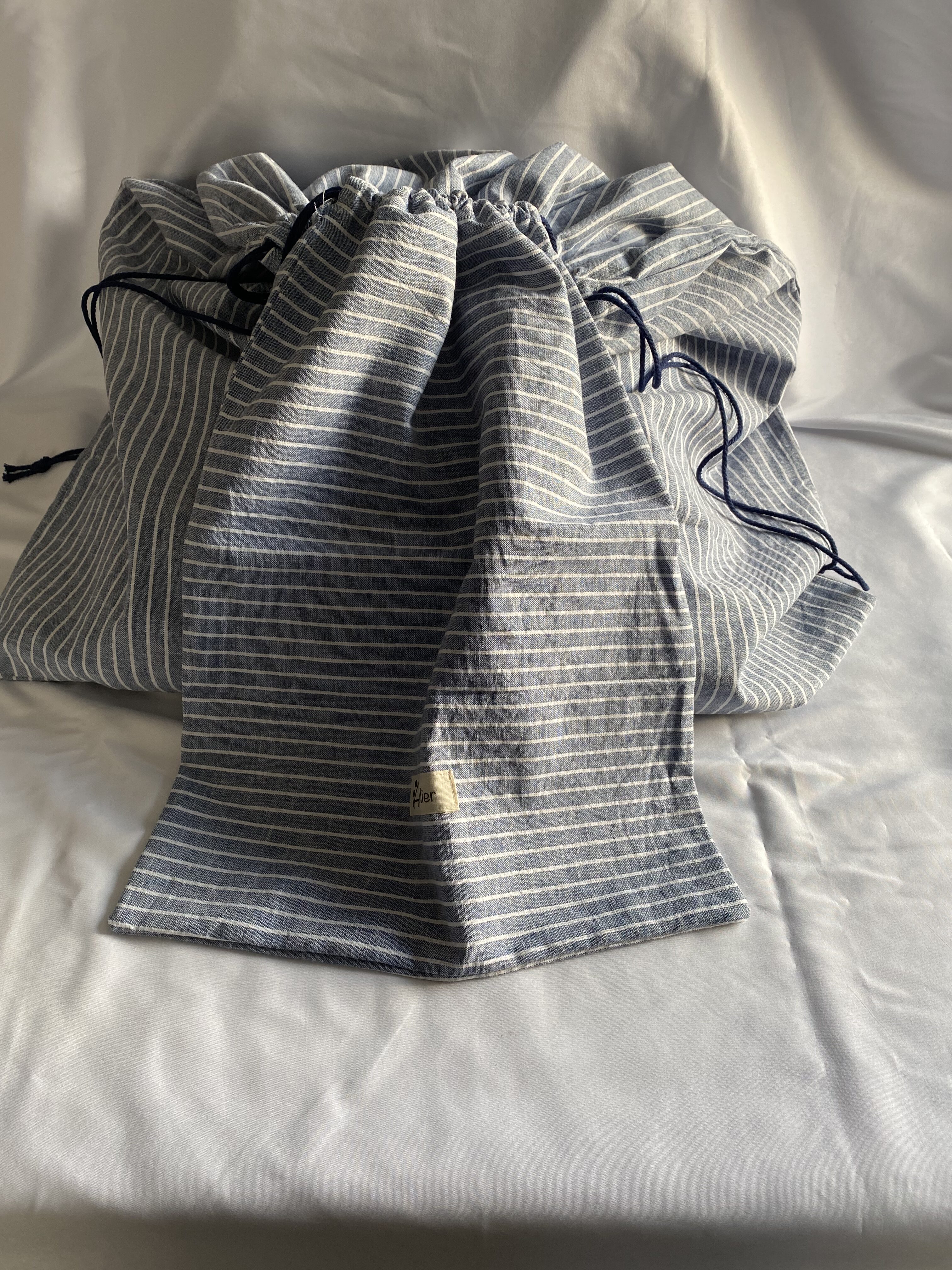 Sac à linge week end en lin à rayures bleu fonçé