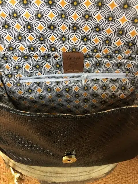 Sac besace en simili cuir avec rabat en simili cuir zèbré, se ferme grâce à un bouton aimanté. Intérieur en coton avec une poche zippée. Lanière en simili cuir réglable mesurant 120 cm.