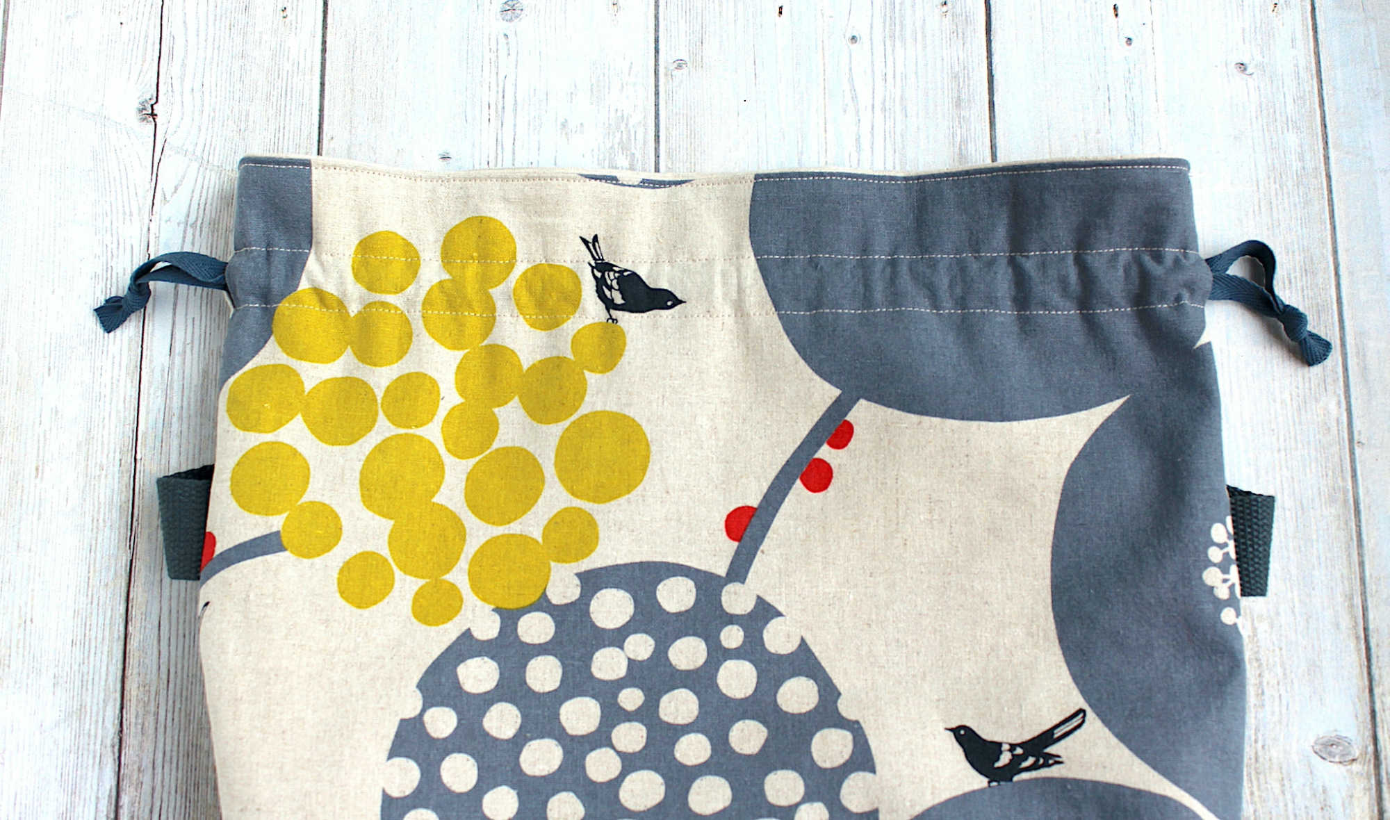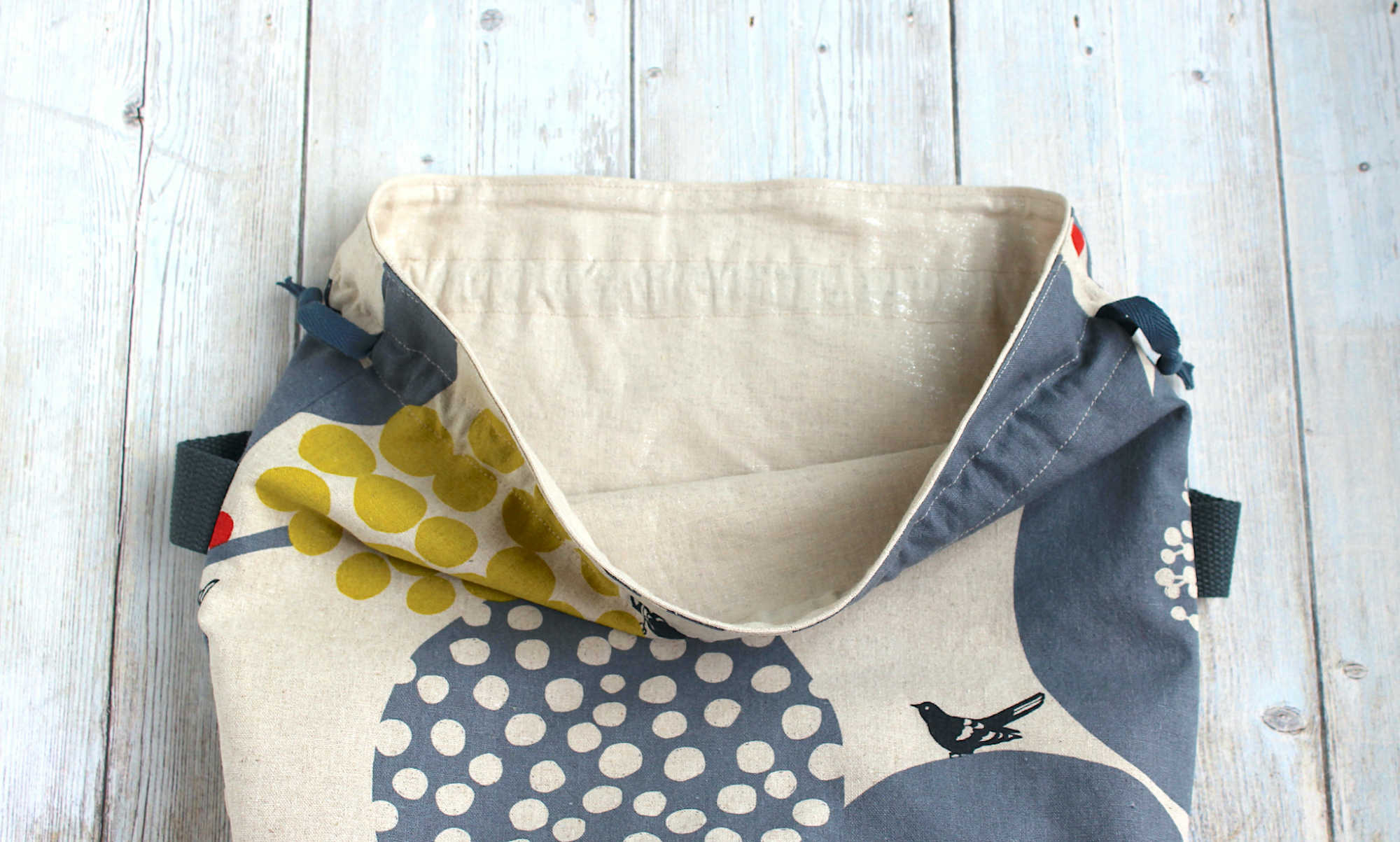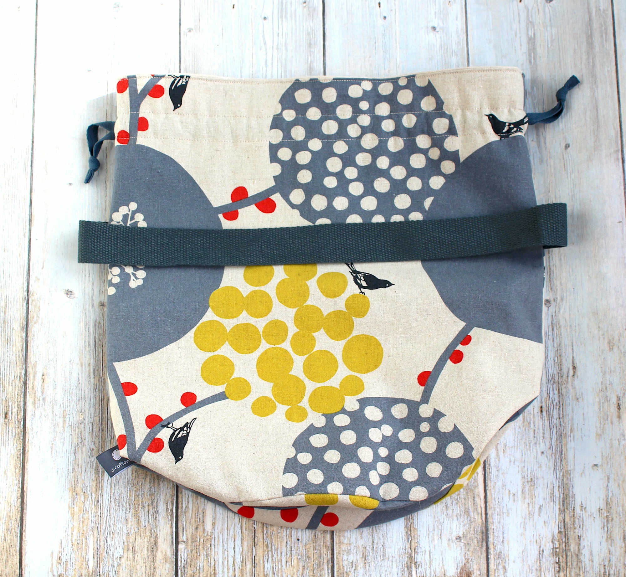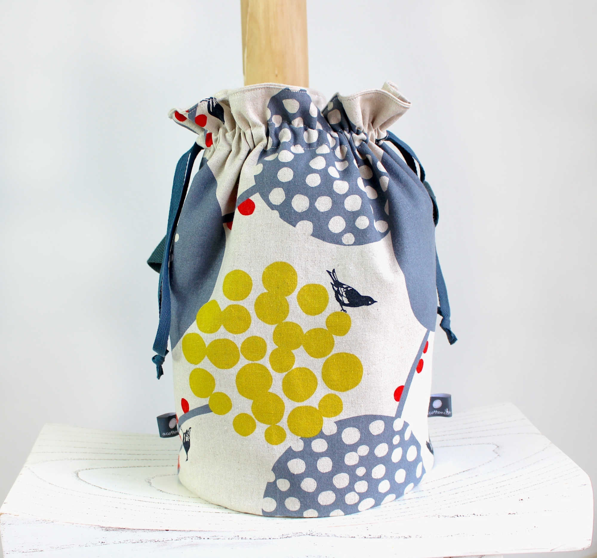 Grand sac à projets tricot en tissu japonais lin et coton. Grand pochon doté de 4 poches de rangement intérieures. Il est doublé et tissu lin coton légèrement argenté.