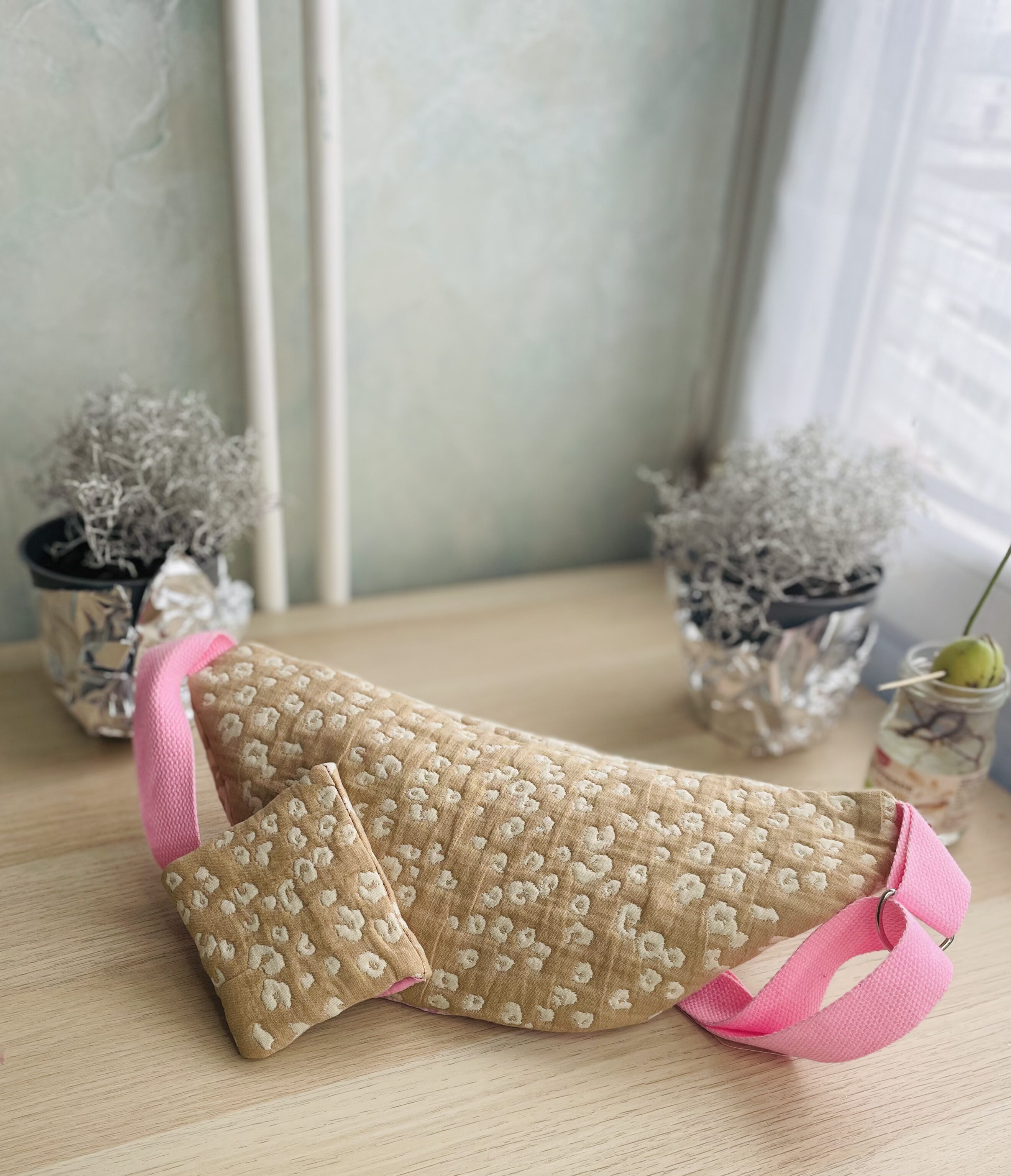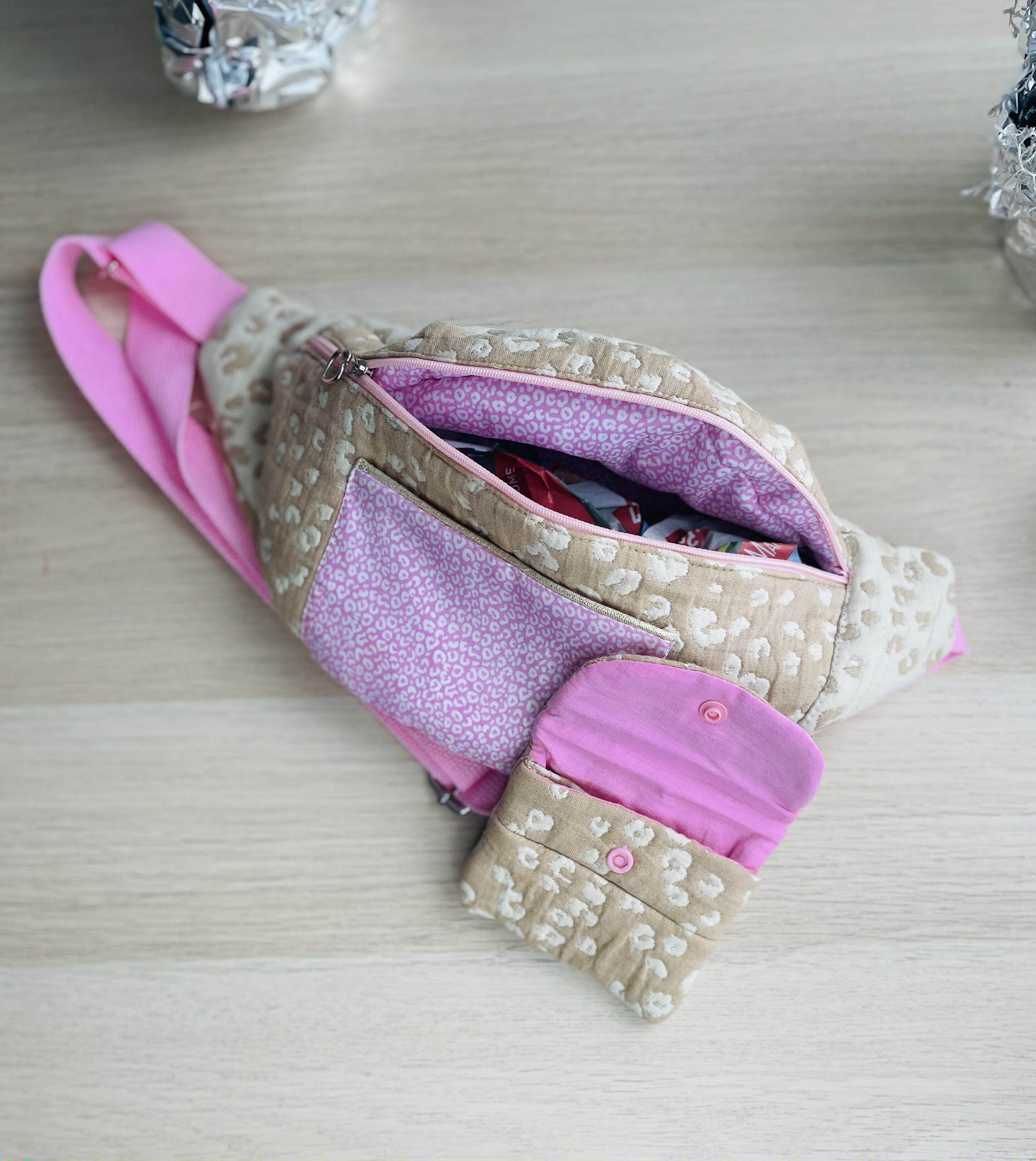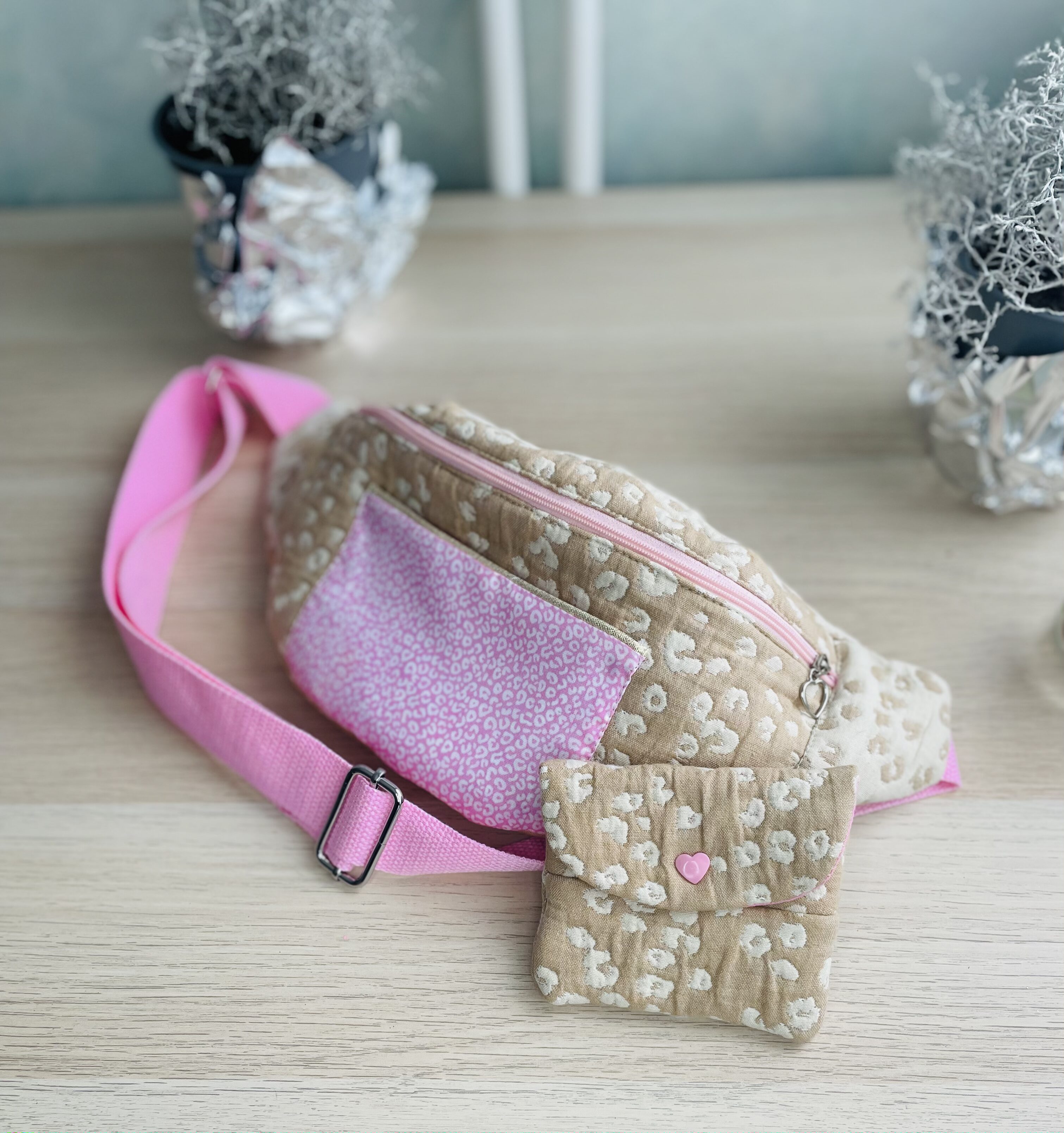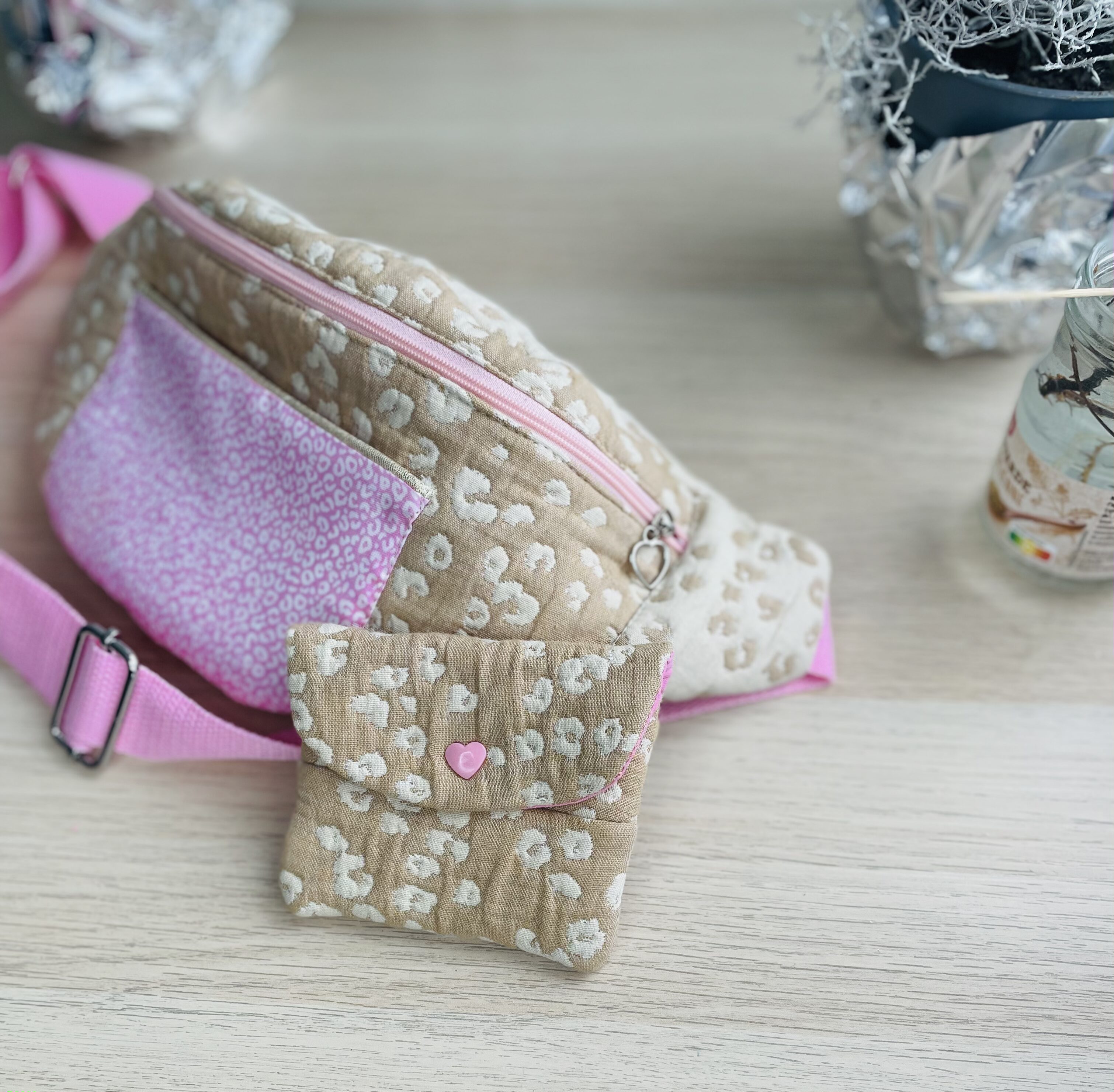 Et voilà, inspirée par mes créations, et ayant du rab, j’ai réalisé cette banane dans les mêmes tons, parce que je trouve que le rose et léopard se marient vraiment trop bien.