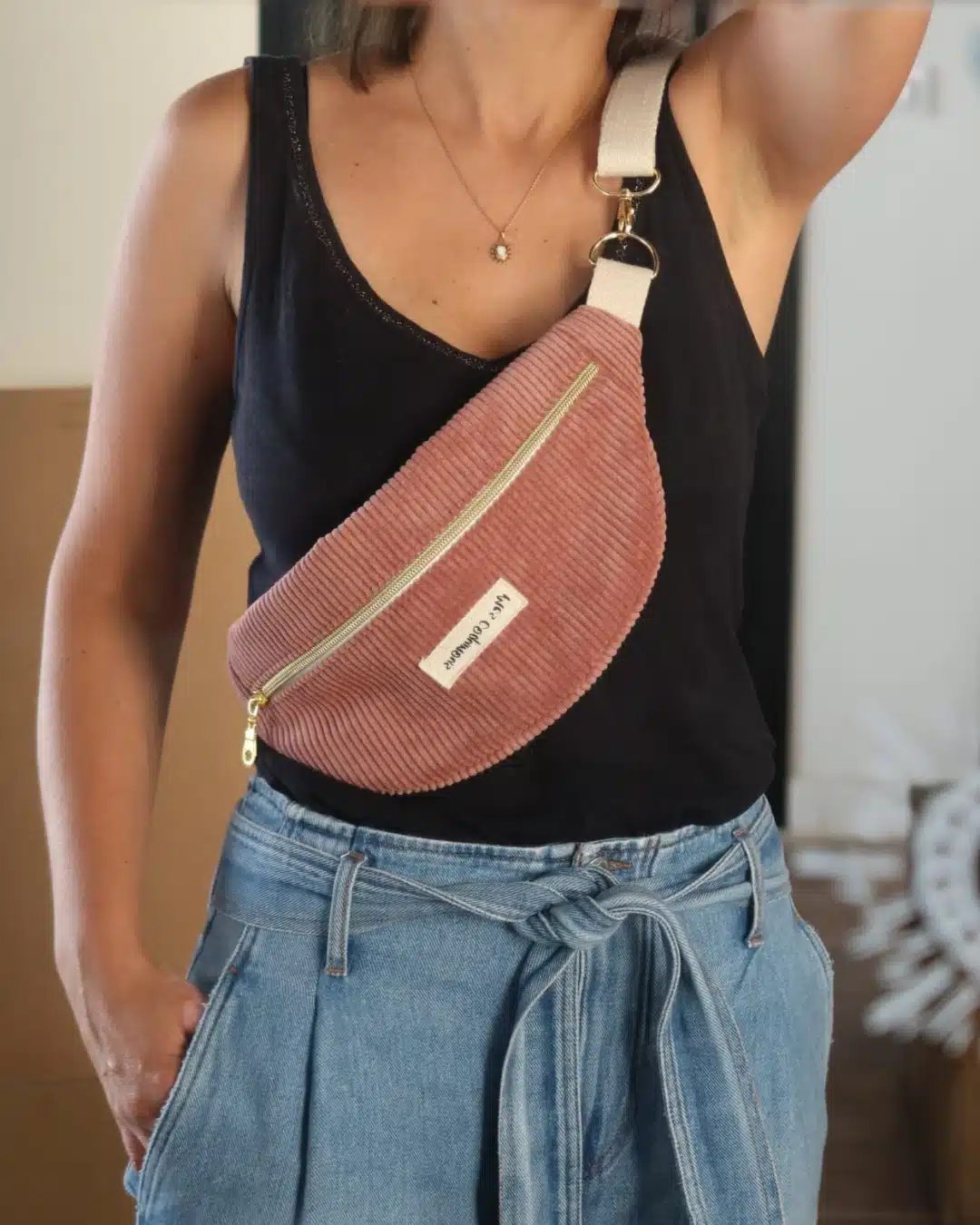 Sac banane en velours cotelé – kaki fait main