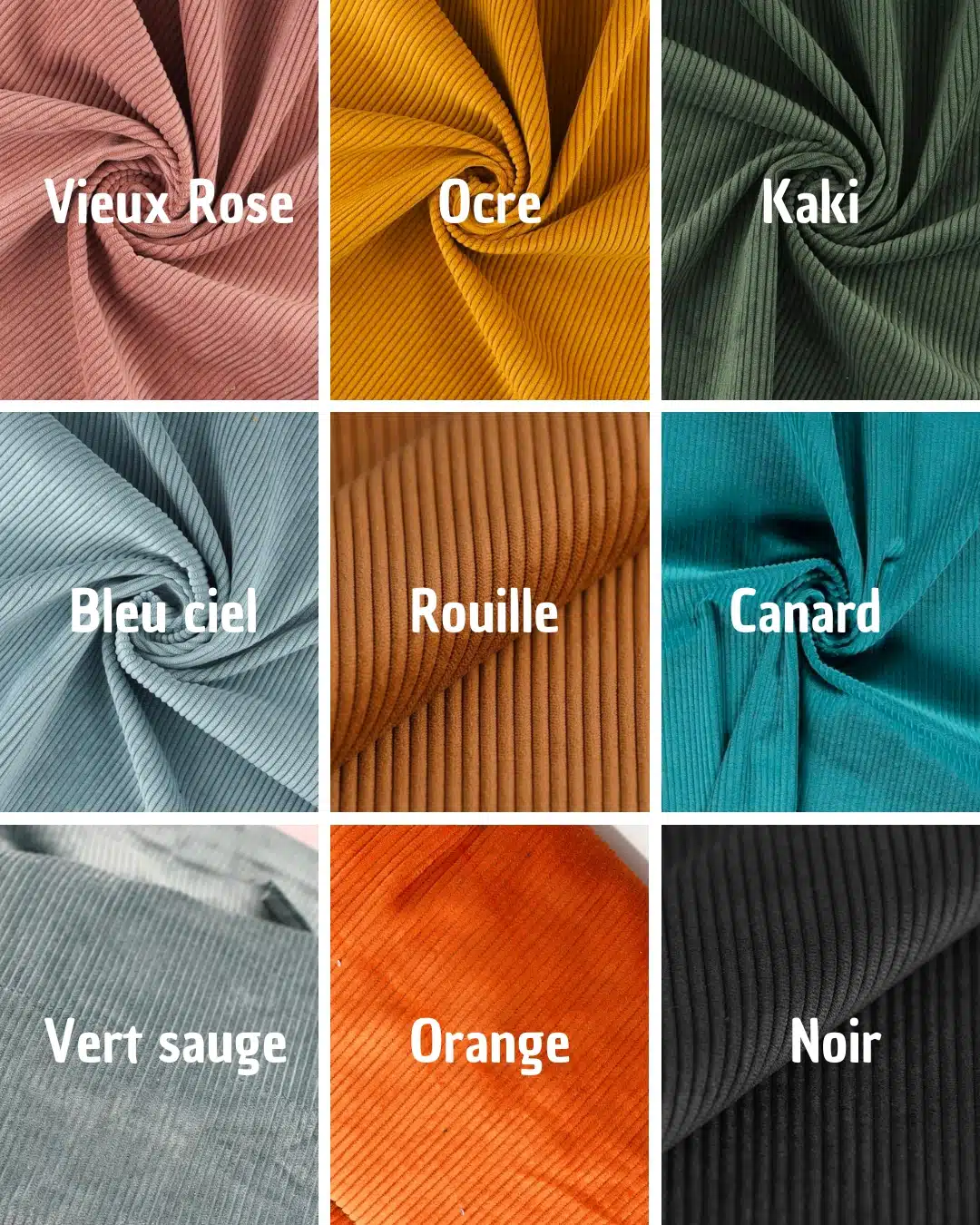 • Velours côtelé : 94% Polyester 6% Polyamide