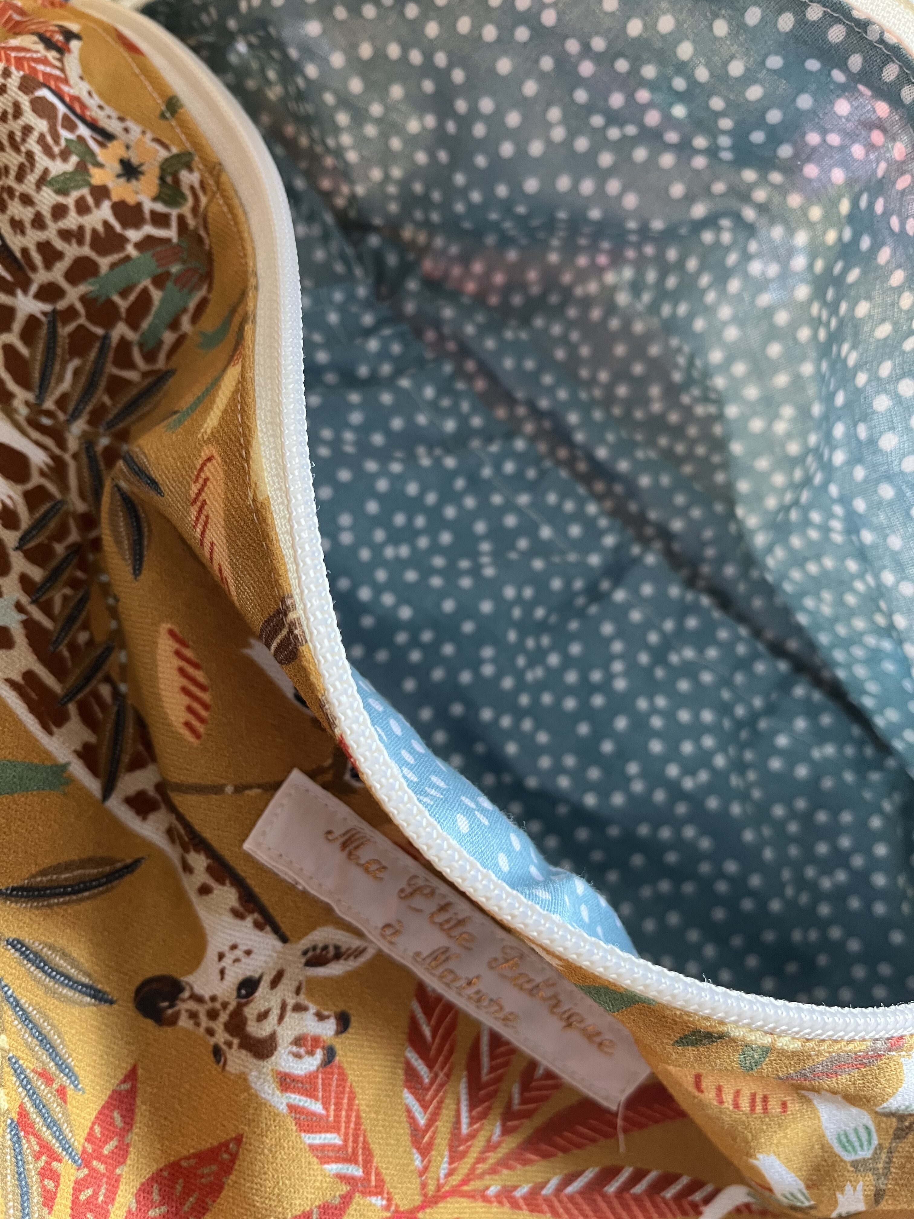Pour l’entretien, je vous conseille un lavage doux en machine à 30 °C et un séchage à l’air libre.