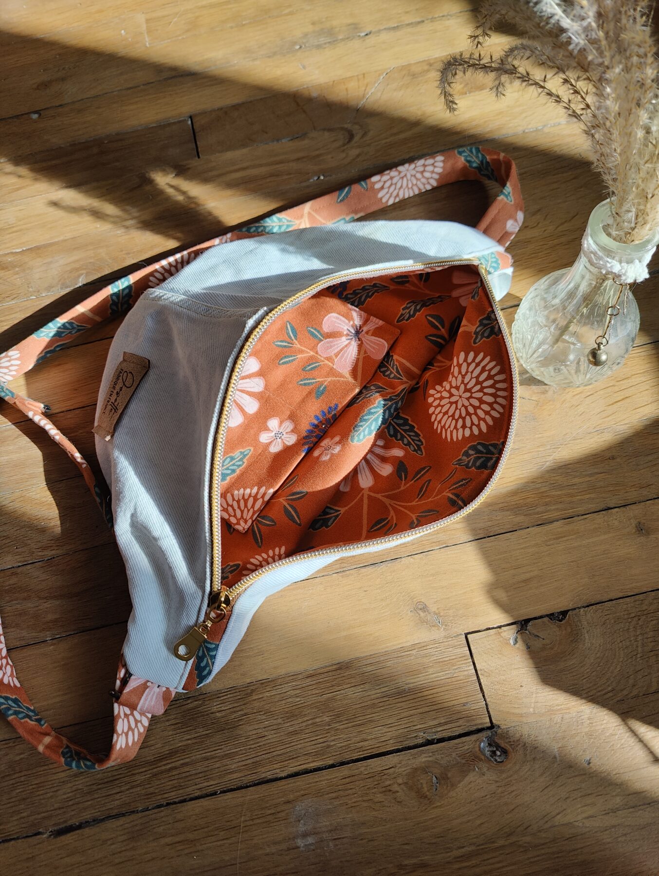 - Sac banane souple et léger de 32 cm de large… à quelques millimètres près, c’est la beauté du fait main : vous offrir un objet unique