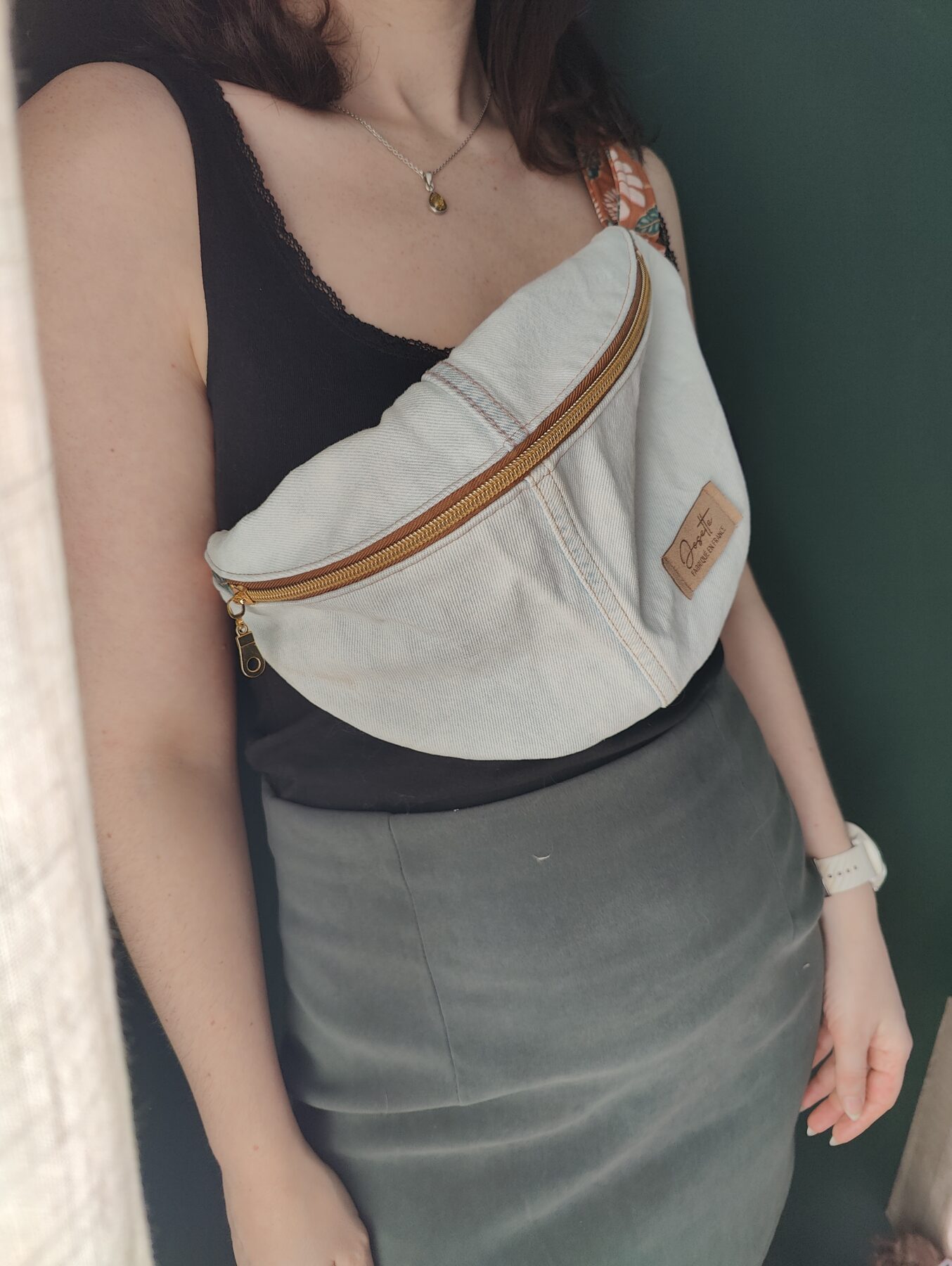 - Tous les sacs banane upcyclés sont taillés dans un pantalon/jean, le tissu intérieur est chiné