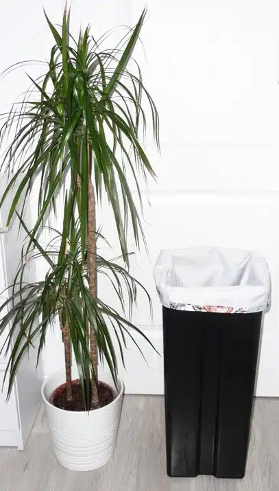 PARTICULARITES : Ce modèle (réversible) est conçu uniquement pour les matières solides. A la maison comme au bureau, ce sac poubelle alternatif de 35L est idéal pour la cuisine, la salle de bains, … Peut être suspendu grâce à son étiquette.