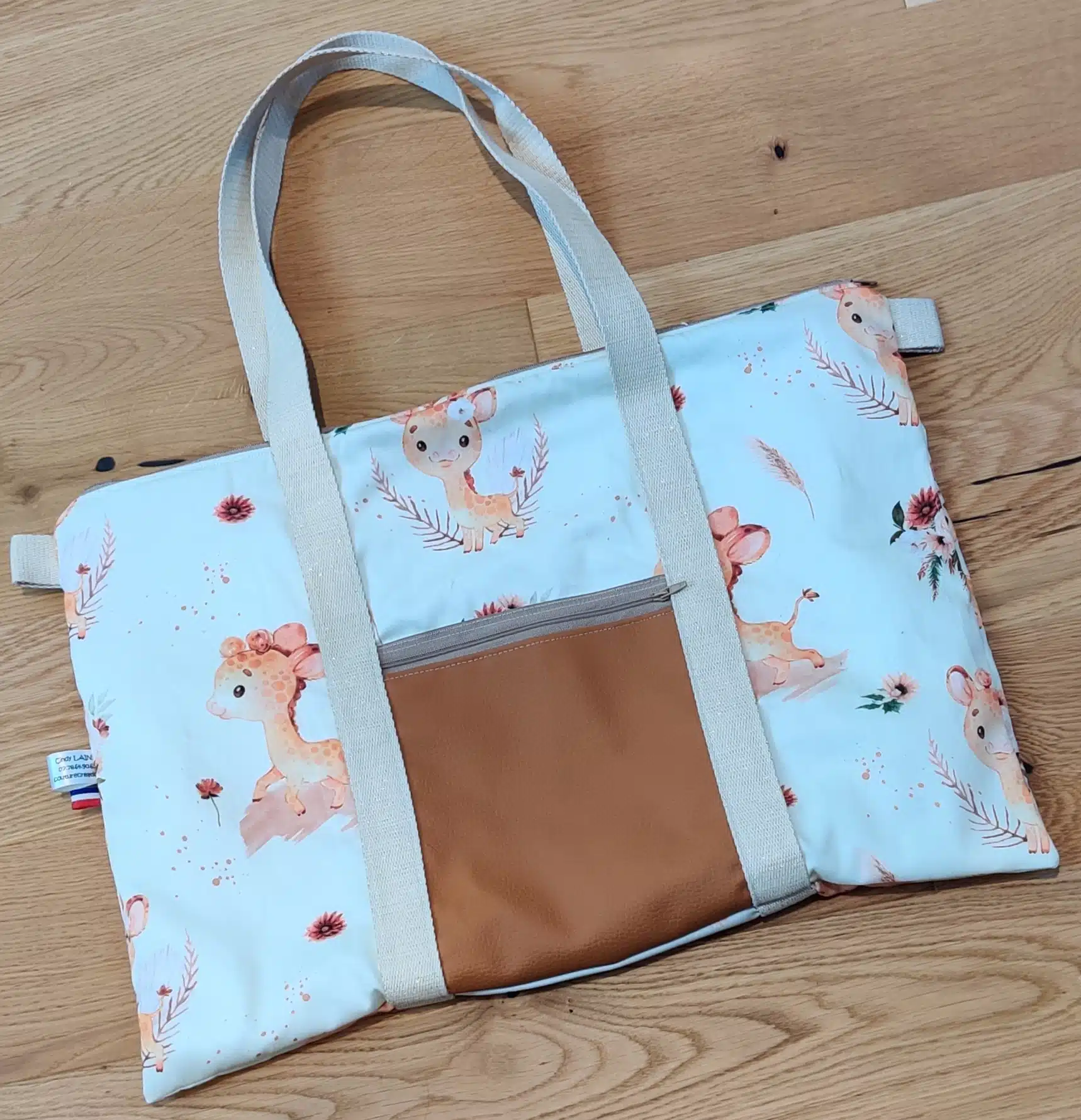 Composition : coton imprimé, simili cuir, fermeture éclairsac