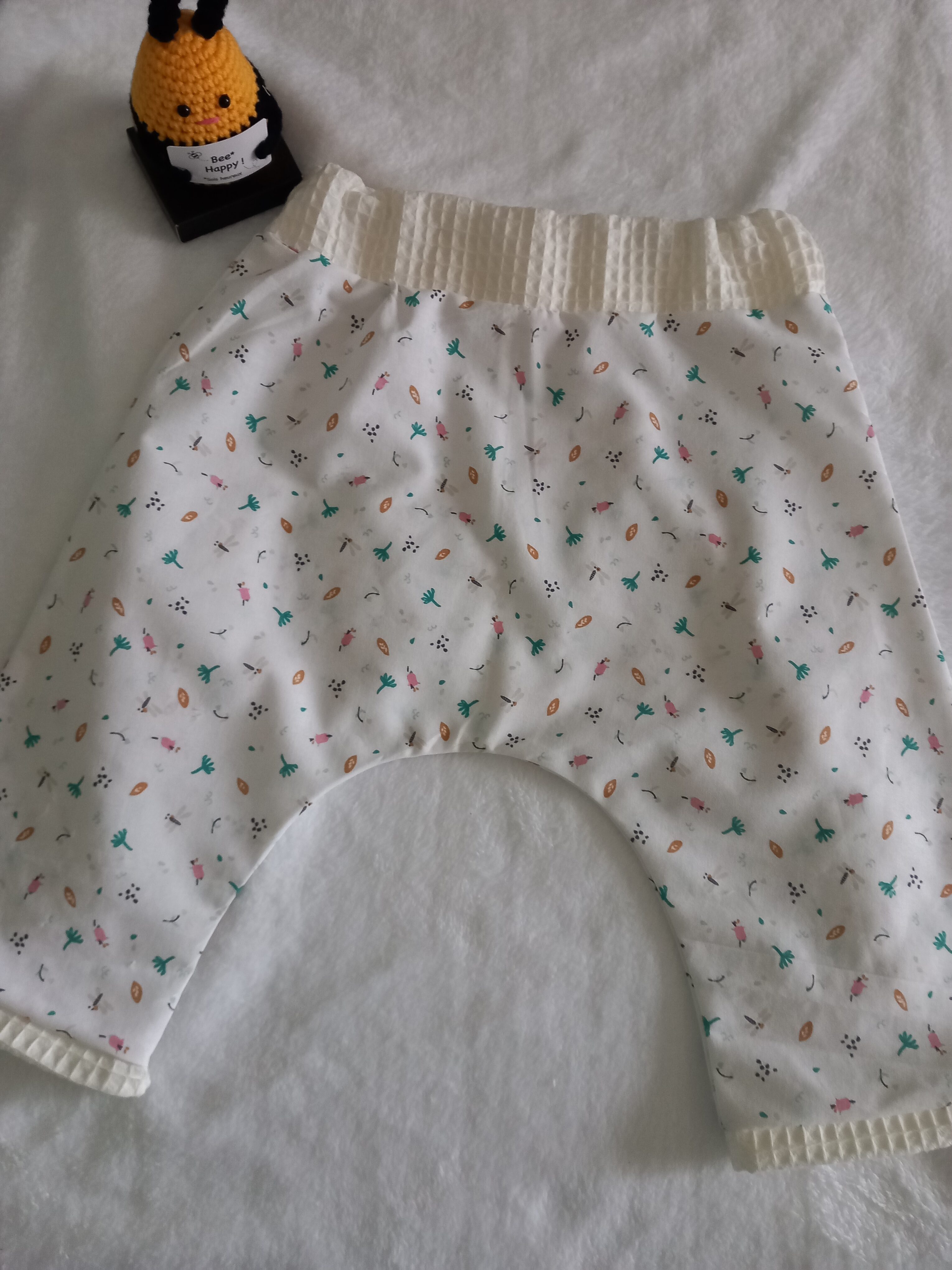 sarouel en coton leger petit motif sur fond blanc ,12 mois