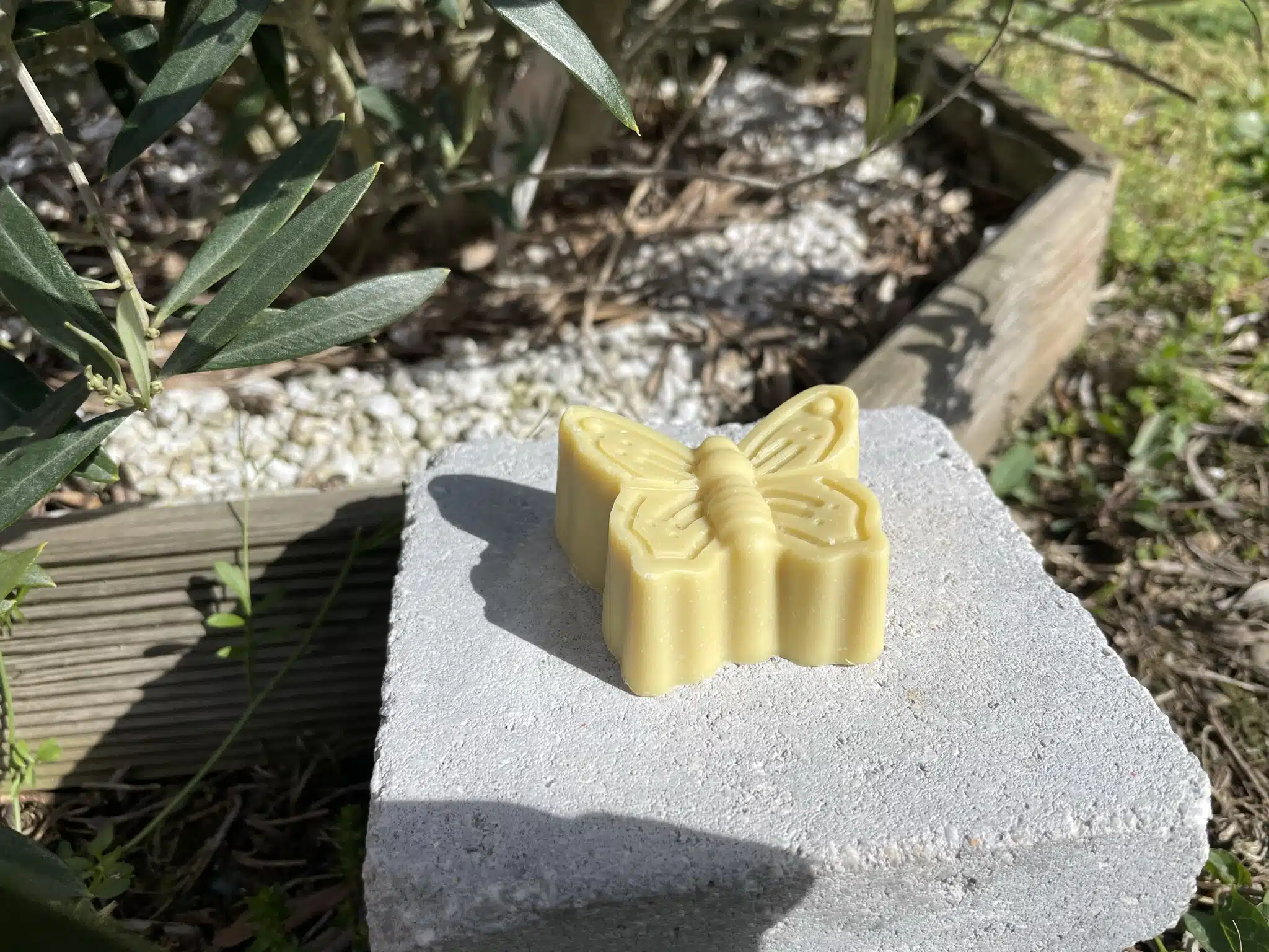 Information couleur : le savon peut voir sa couleur varier sans aucun impact sur sa qualité. Le savon moulé individuellement sera par exemple plus clair que le pain de savon.