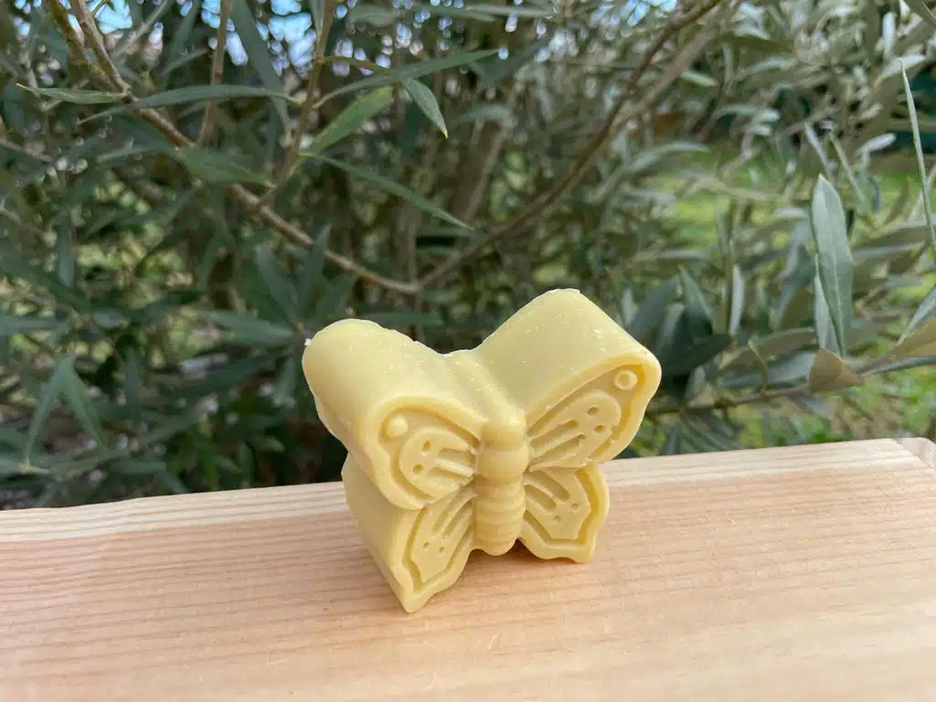 Ingrédients : huile d’olive*, huile de colza*, huile de cameline*, glycérine issue de la saponification, miel, eau et argile blanche.