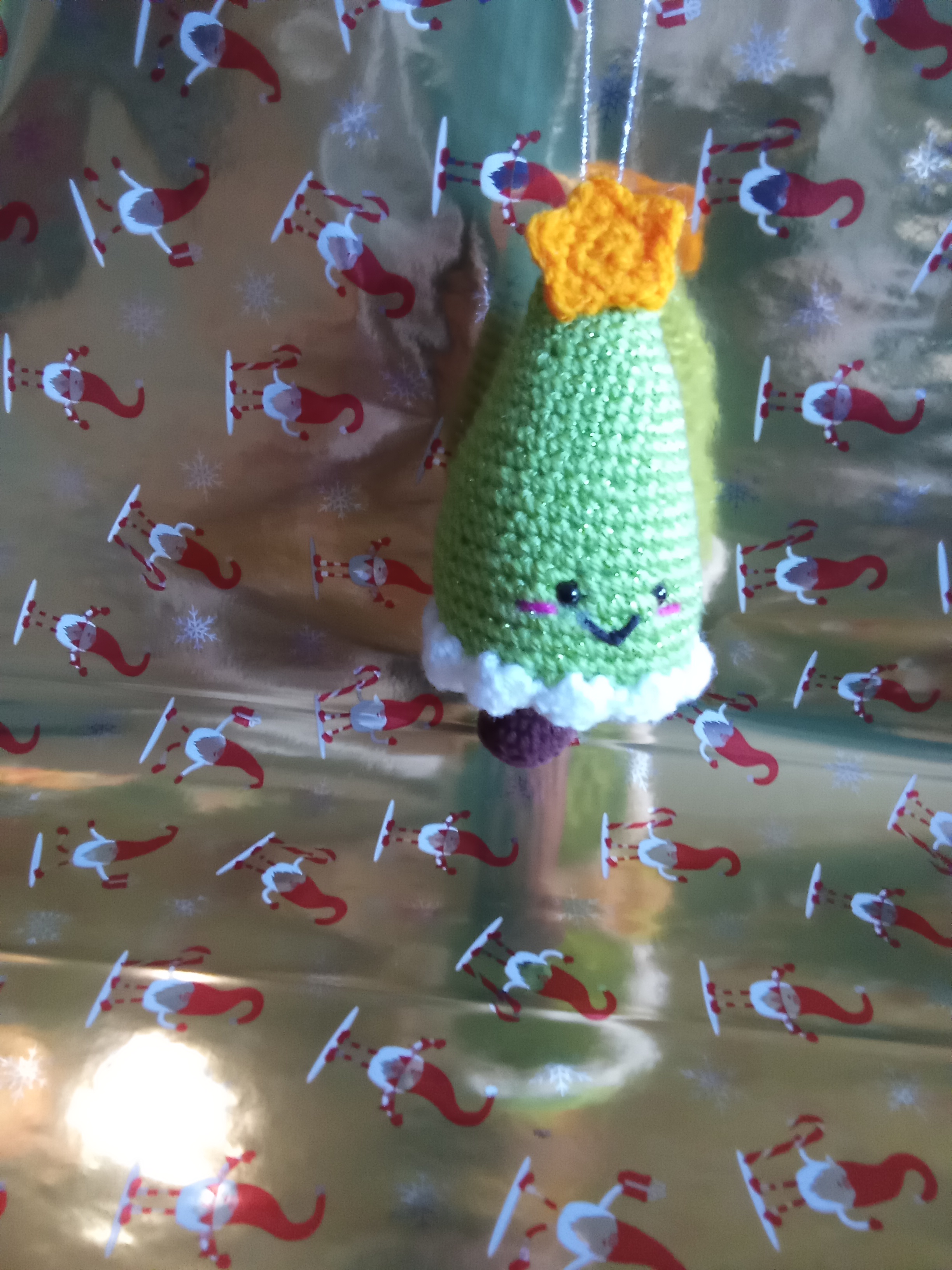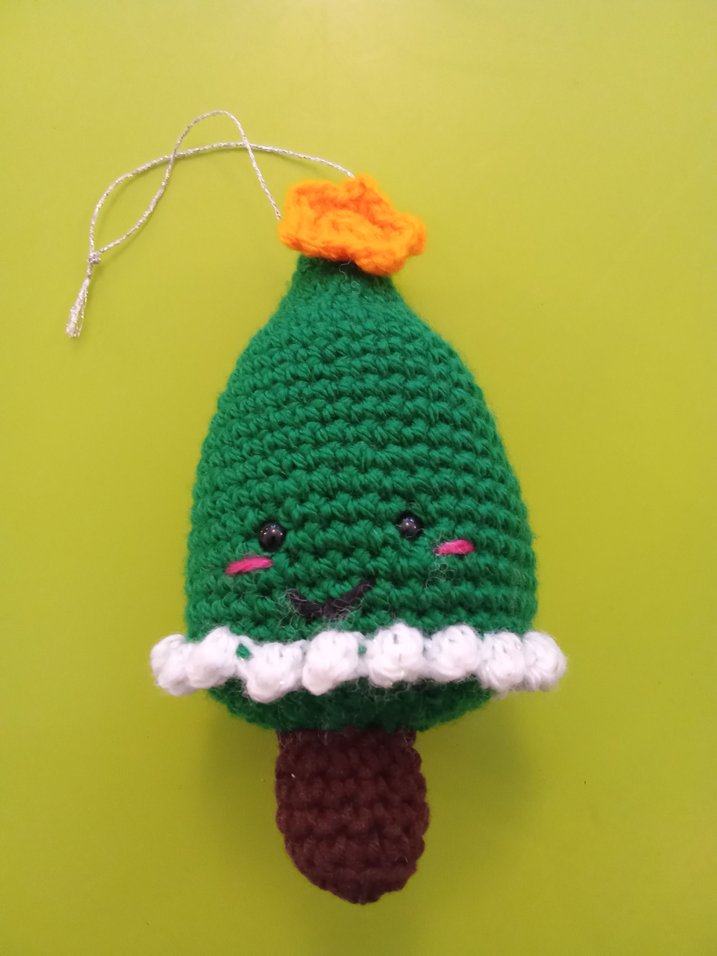Petite suspension faite au crochet pour décorer. Hauteur 15cm. Couleur vert clair ou foncé.