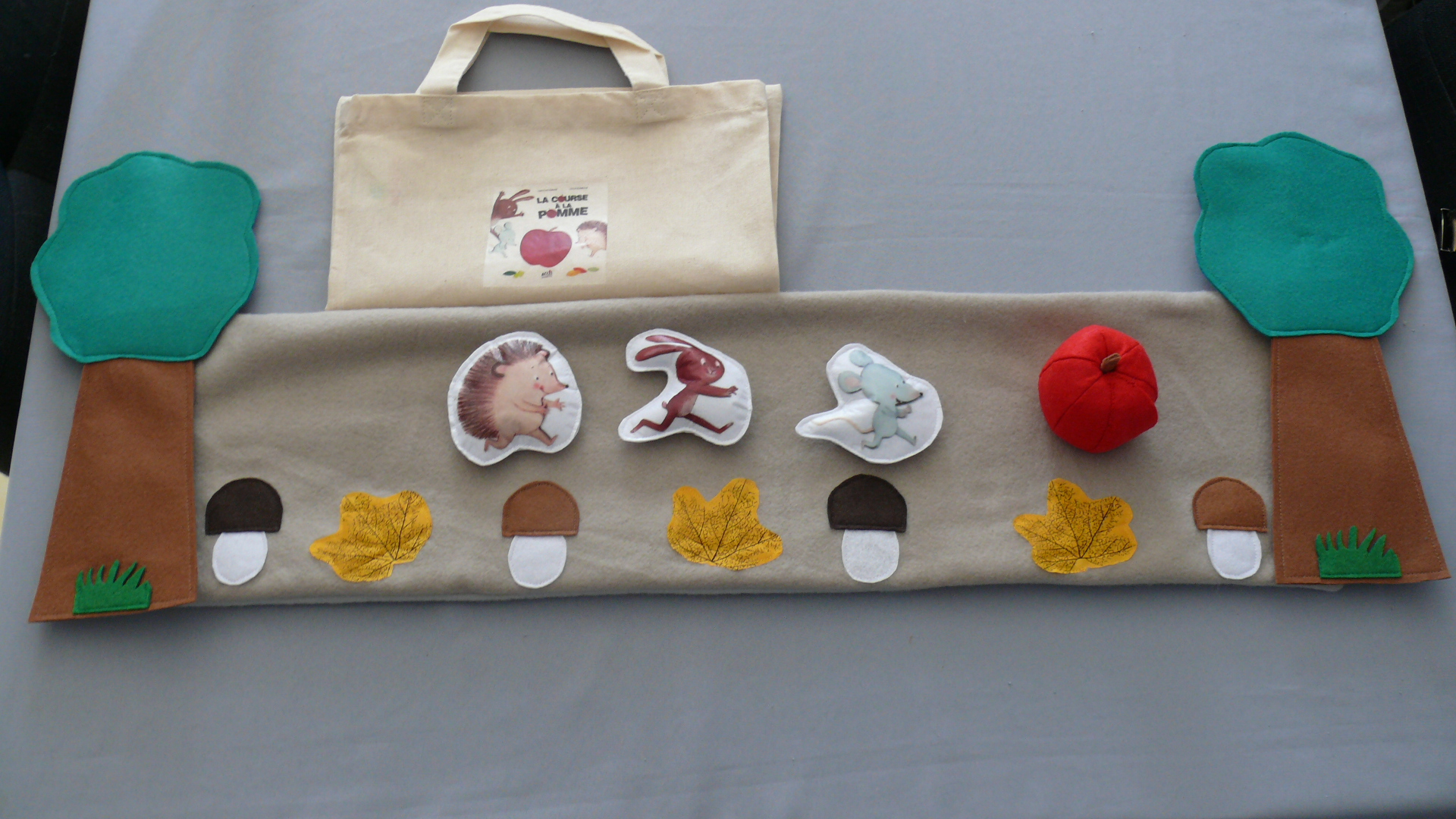 – Un sol (tissu polaire recto/verso, non matelassé) de 70 cm de longueur avec des champignons et des feuilles de cousus dessus