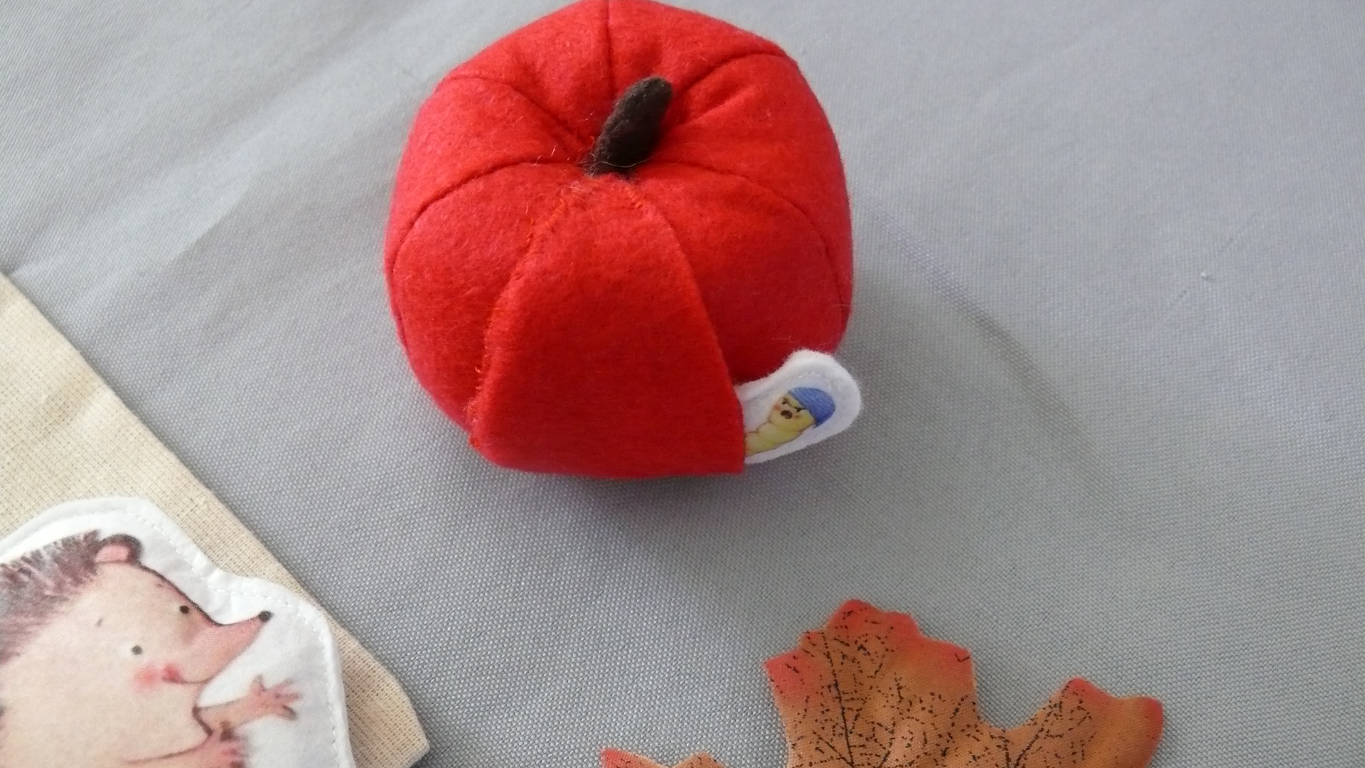 – Une pomme avec une petite poche extérieure pour cacher l’asticot