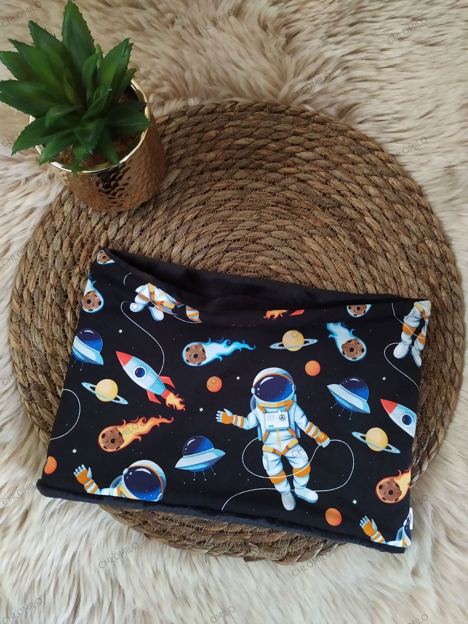 Tour de cou motif astronautes fond noir