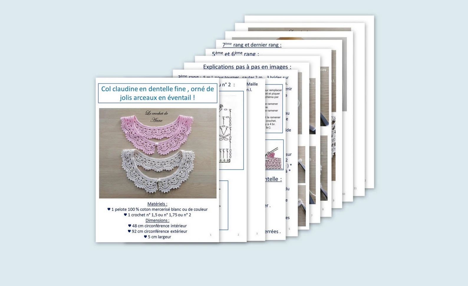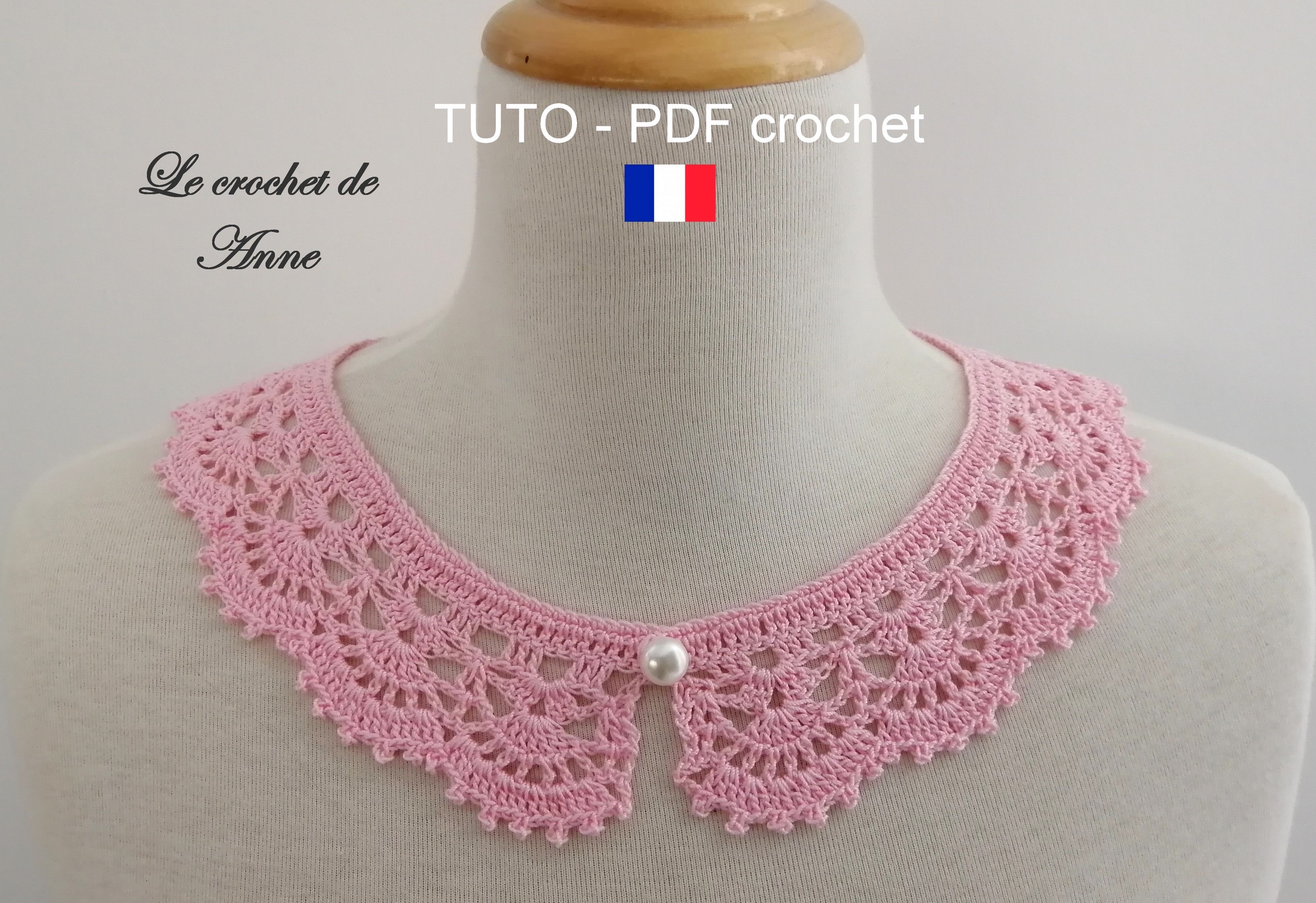 Très facile à réaliser ce ravissant Col Bohème , Col Romantique , Col Dentelle , orné de motifs en éventail , en 100 % coton mercerisé , fermé par un bouton perle , grâce à mes explications très claires !