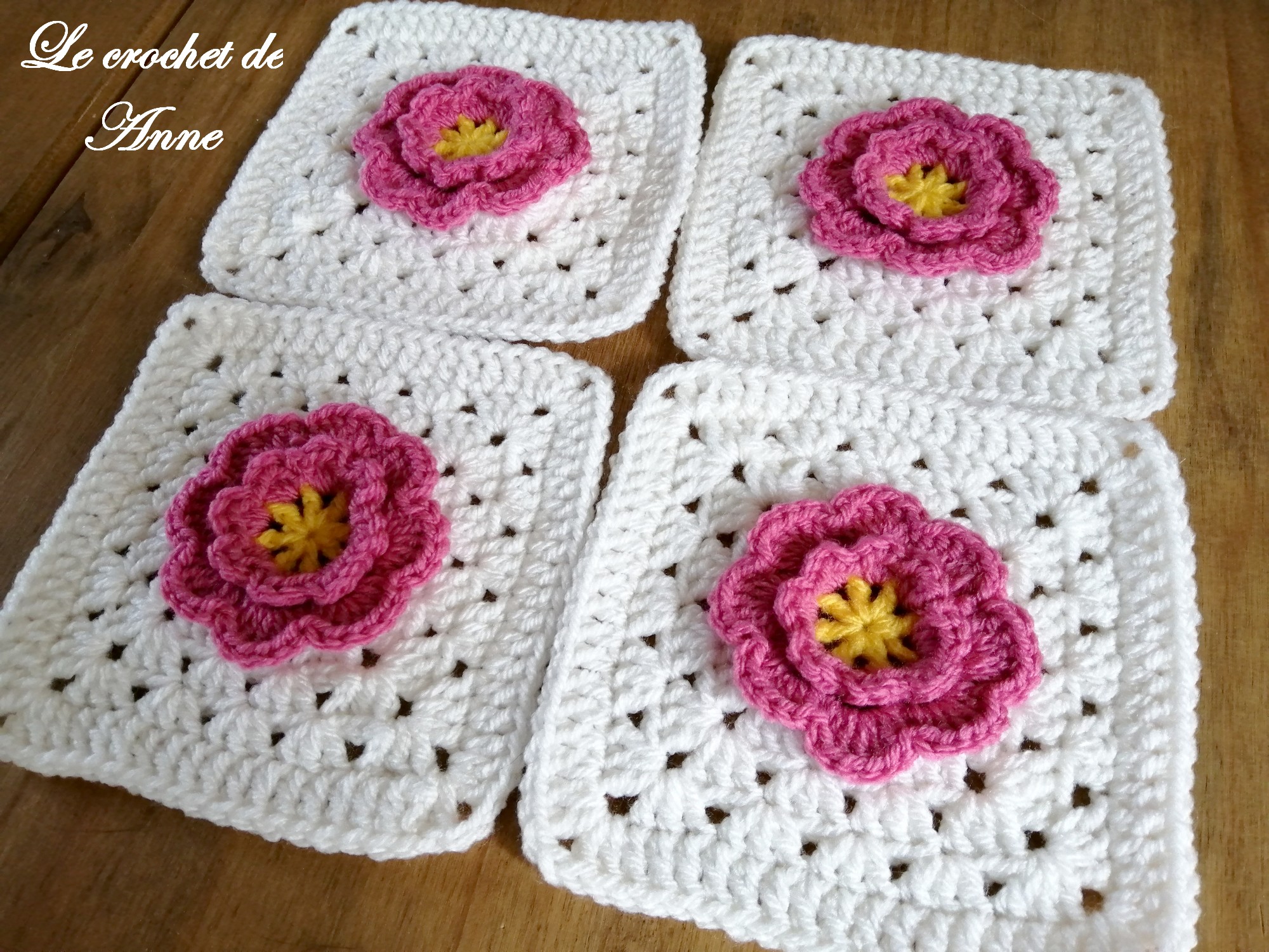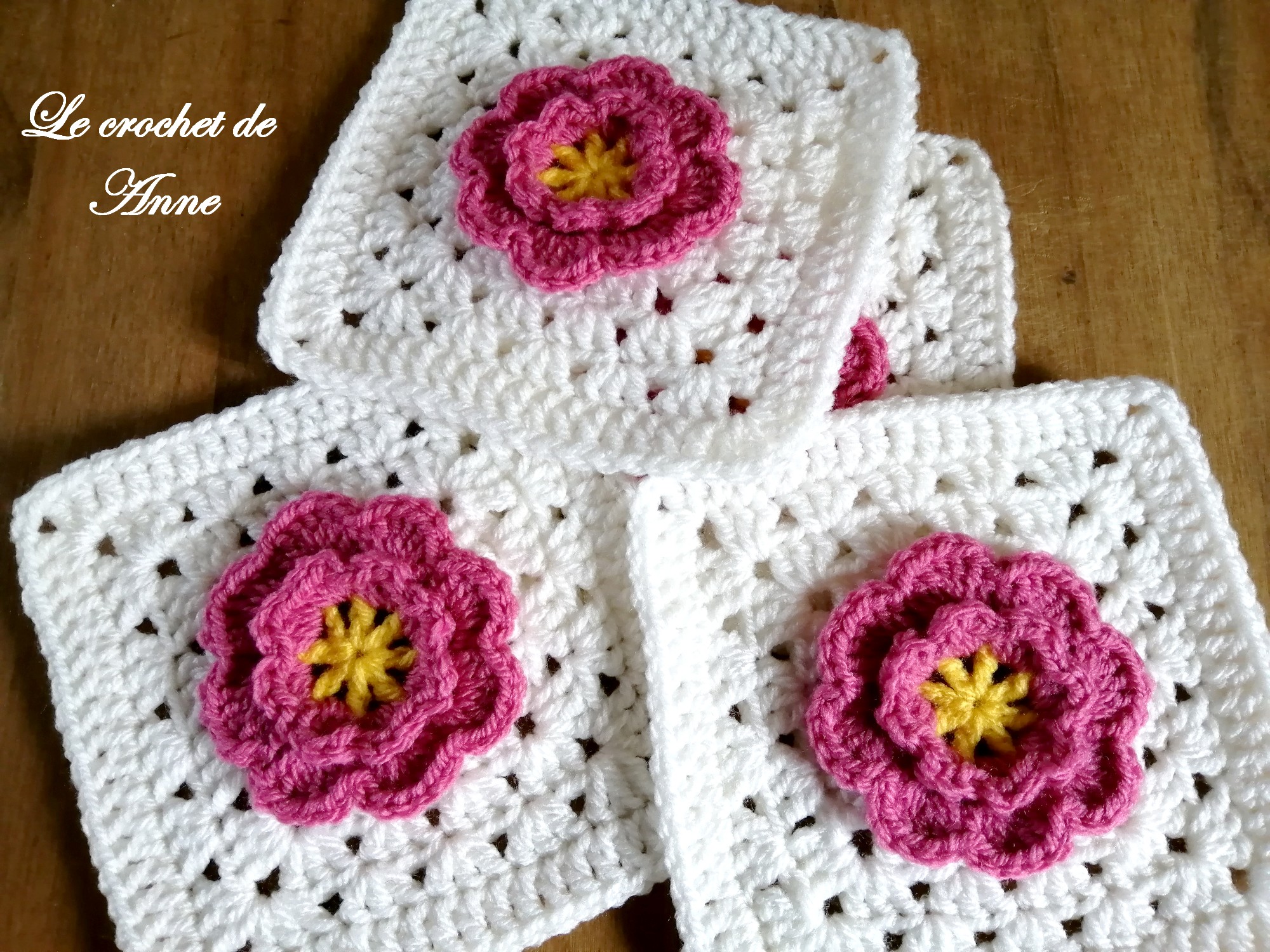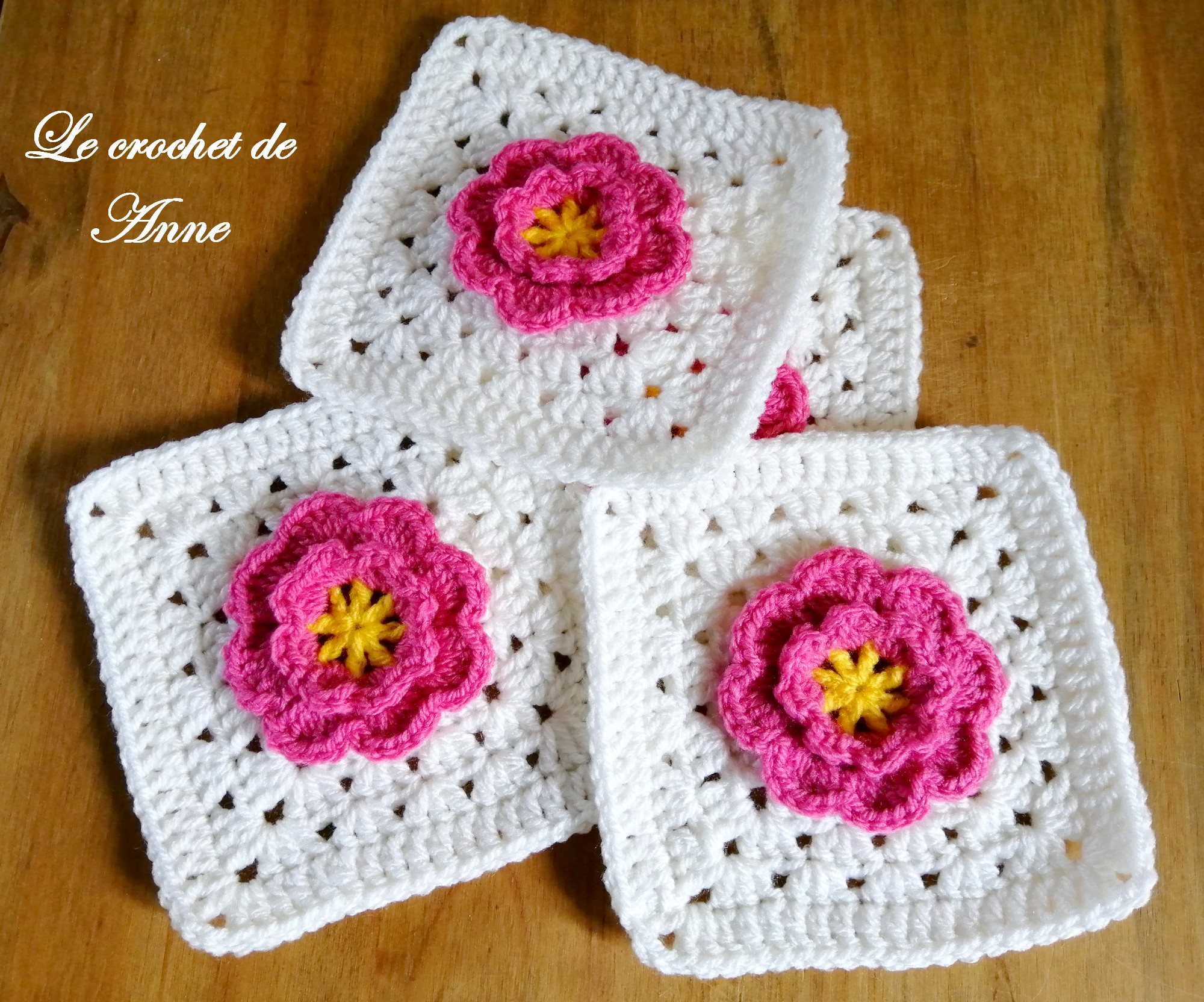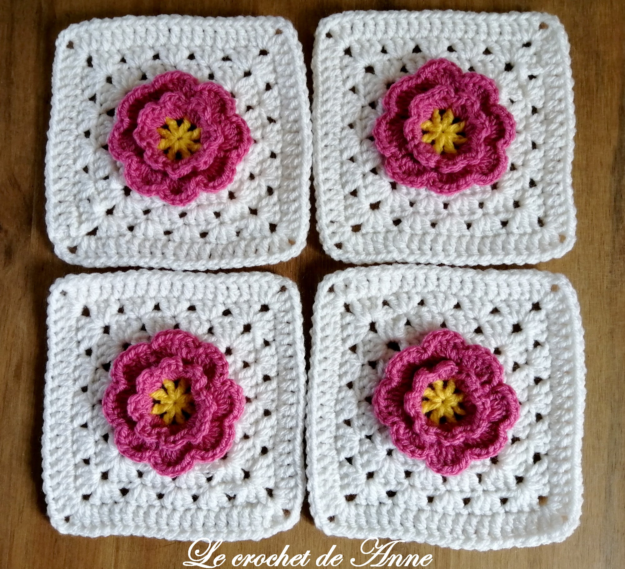 Un adorable carré Granny orné d’une fleur en relief en 3D , pétales sur 2 rangs , Motif Grand-Mère , à réaliser en laine ou en coton , suivant vos envies , pour créer des coussins , sacs , couvertures , plaids , pulls , des modèles infinis en carrés Granny !