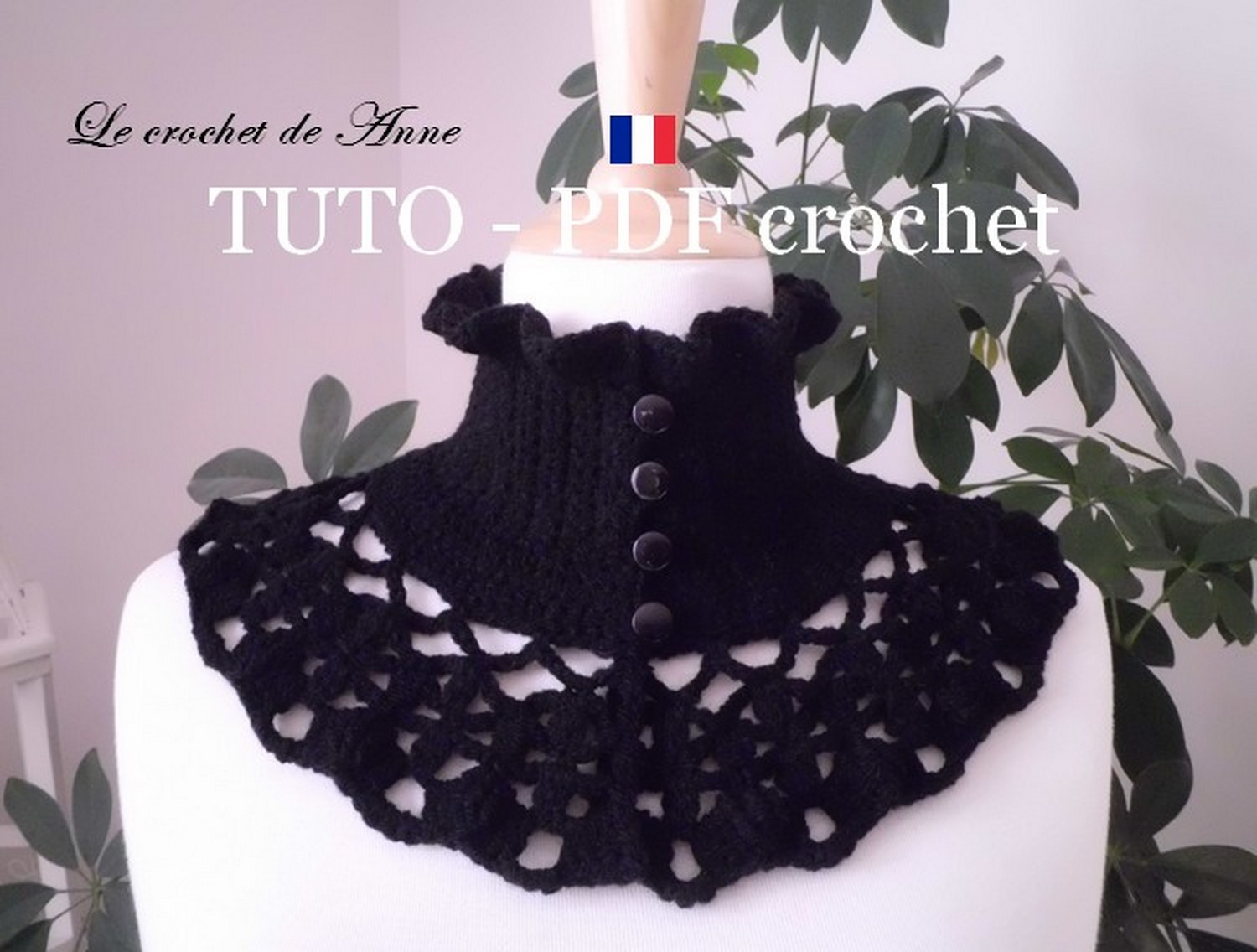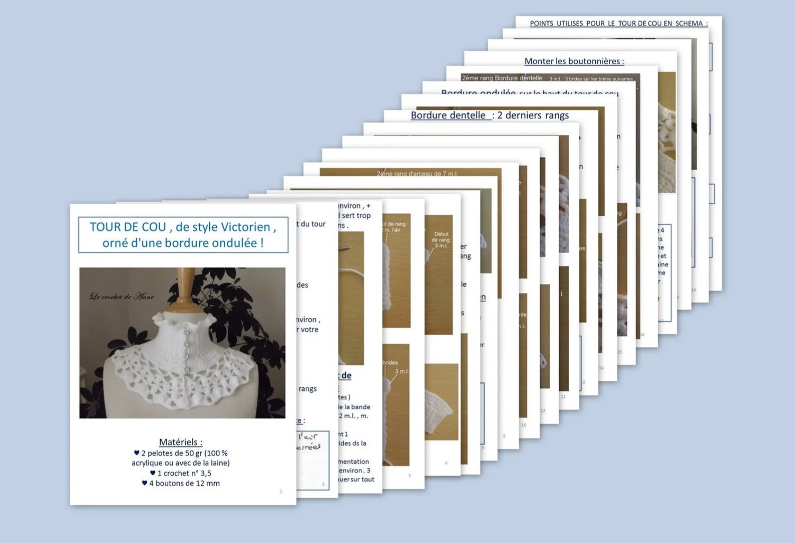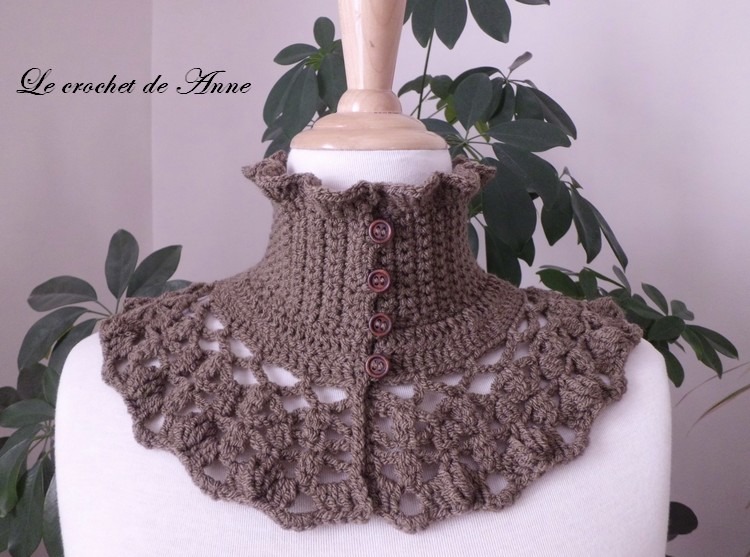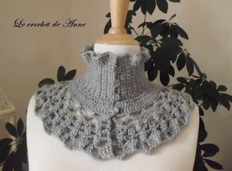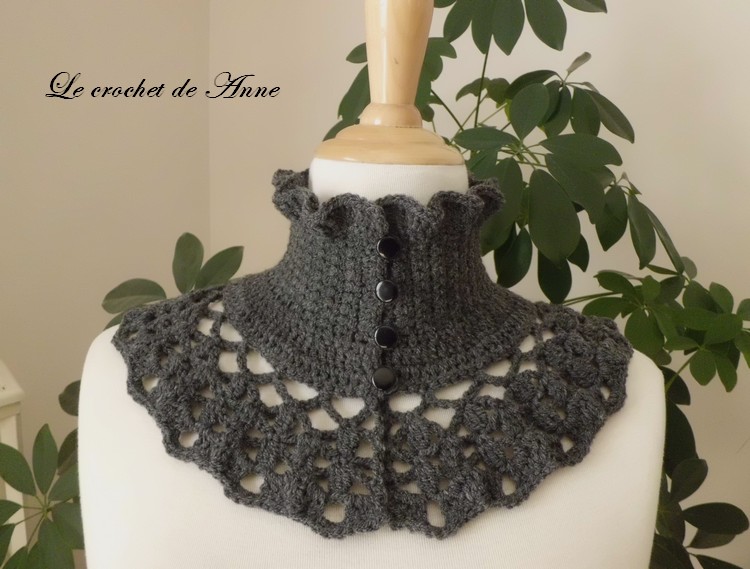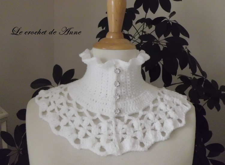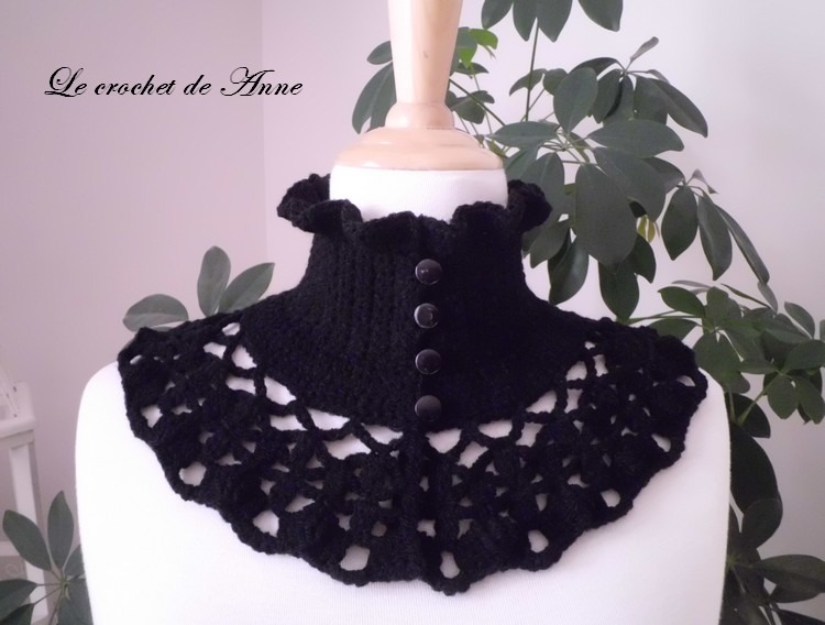 Très facile à réaliser ce joli Tour de cou de style Victorien , orné de belles bordures ondulées , de rangs ajourés , aux jolis points fantaisies , fermé par 4 boutons ronds , grâce à mes explications très claires !