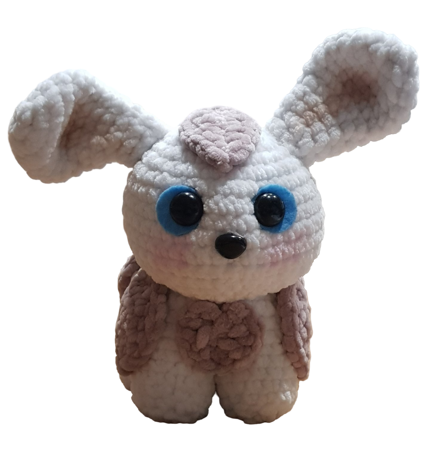 Le modèle a été réalisé avec un crochet 5.5mm et 1 pelote chenille Bunny baby blanche et beige de chez lilly.wools avec yeux de sécurité et nez. Vous pouvez toutefois faire les yeux et le nez au crochet
