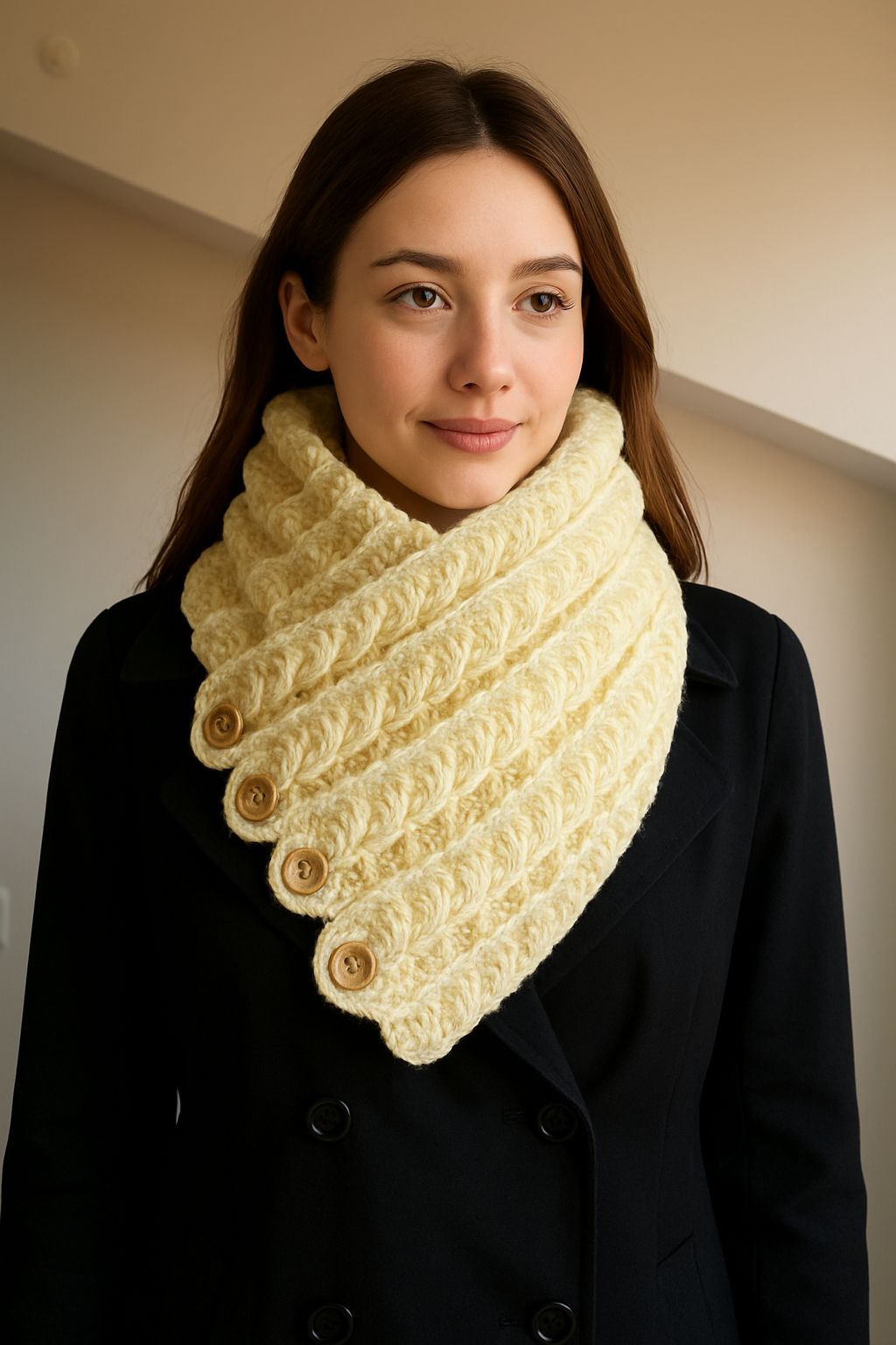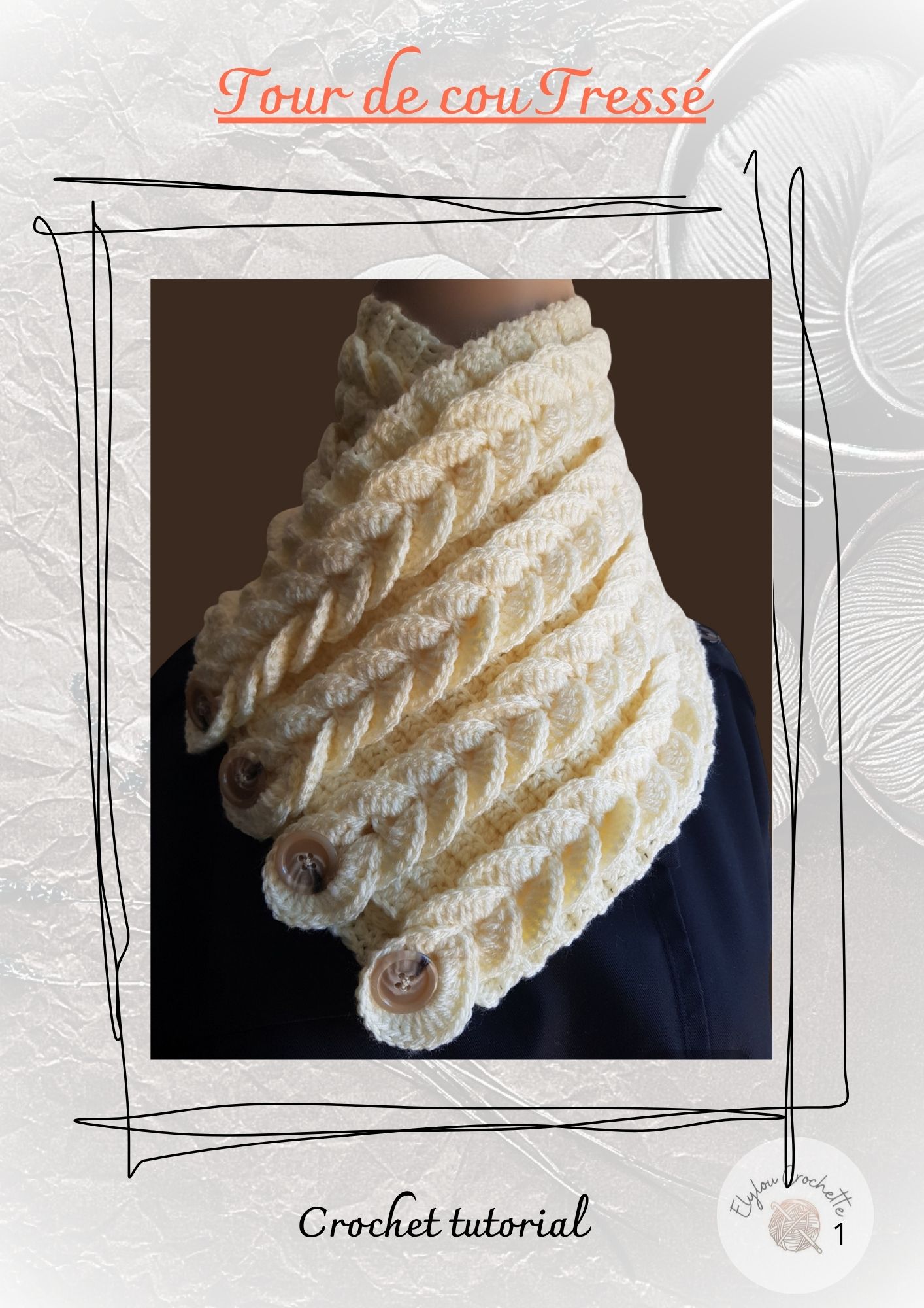 Le modèle a été réalisé avec un crochet 4.5mm et 5 pelotes de 133m mais vous pourrez utiliser le fil de votre choix