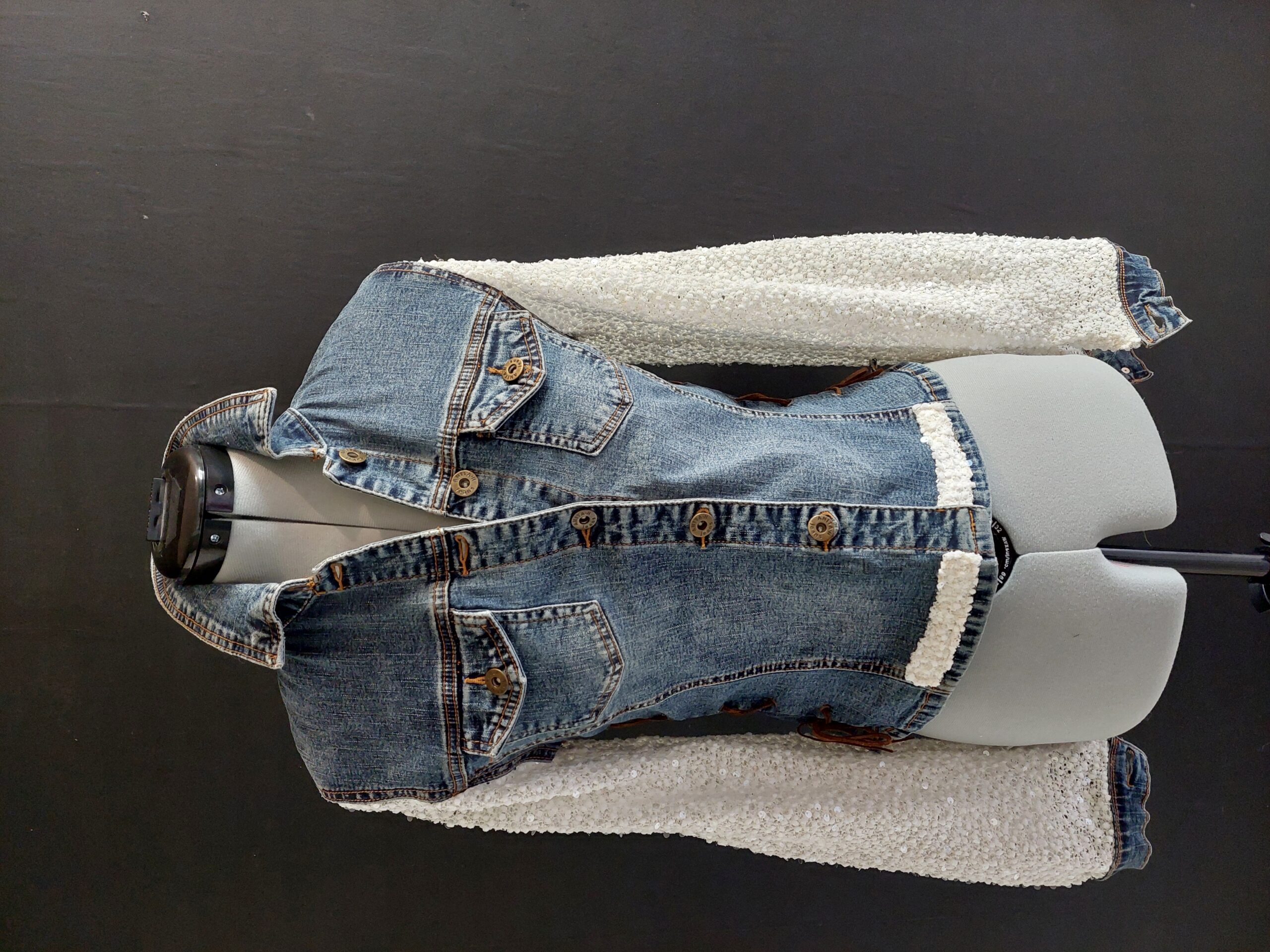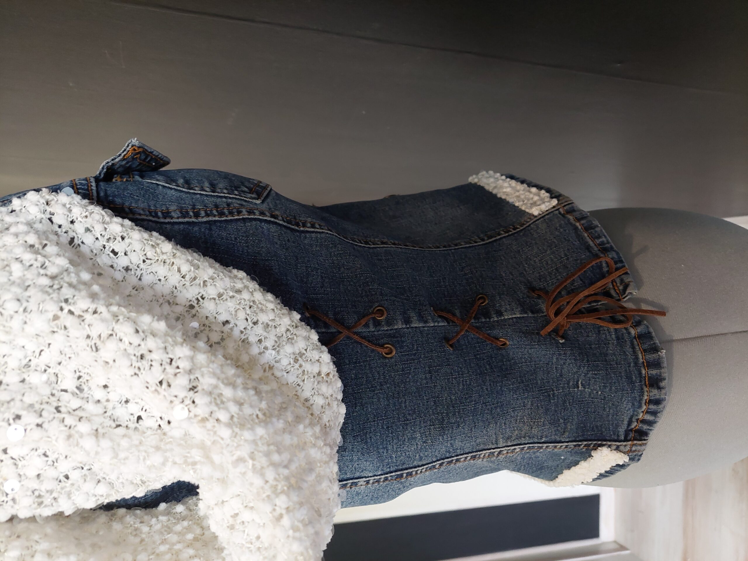 Veste en jean avec lacets sur le côté .